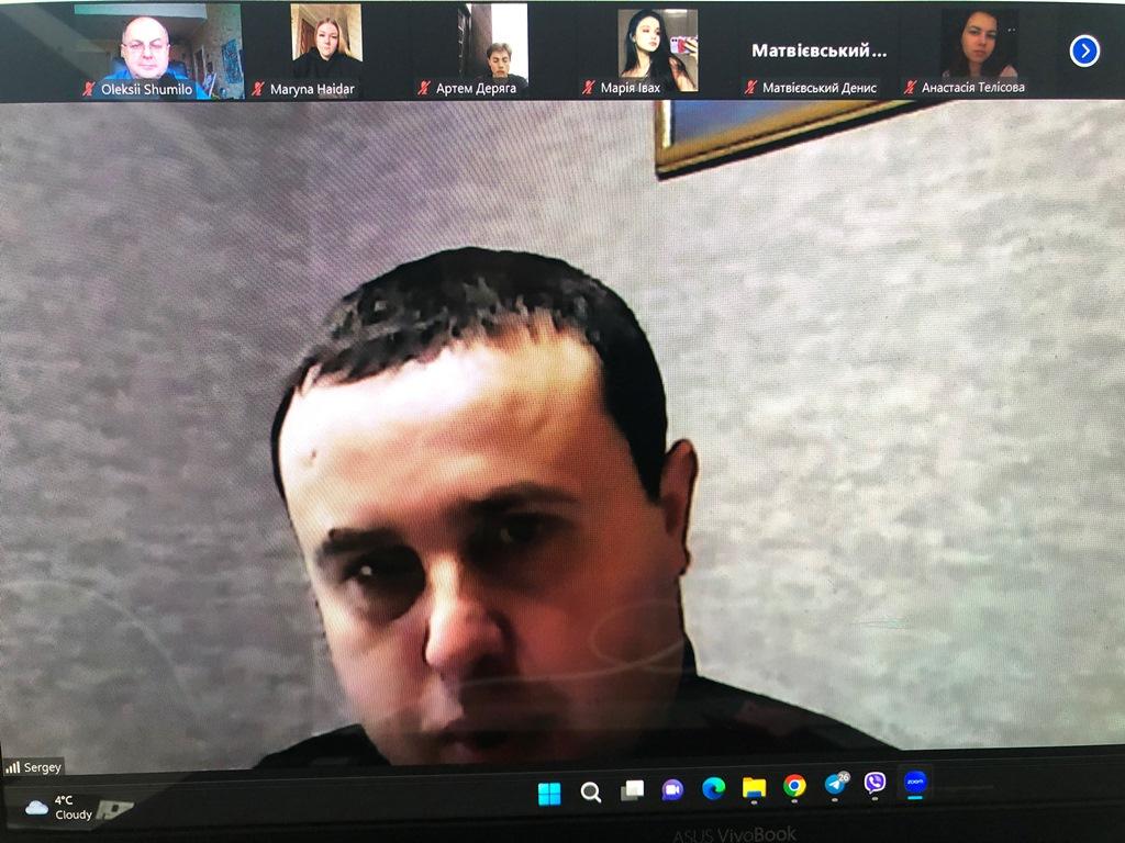 Студенти першого курсу Сумської філії ХНУВС почали спілкування із представниками своєї майбутньої професії. 11 листопада на бінарне заняття із навчальної дисциплін «Судові та правоохоронні органи України» за темою «Органи та установи юстиції» було запрошено практикуючого адвоката Міненка Сергія, м. Буринь. Воно було організоване професором кафедри юридичних дисциплін Сумської філії ХНУВС Олексієм Шумілом.