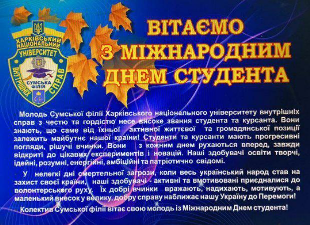 Колектив Сумської філії вітає свою молодь із Міжнародним Днем студента!