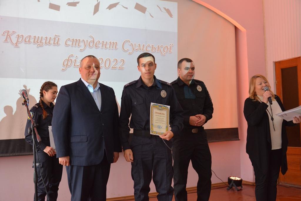 Цього року переможцями конкурсу «Кращий студент 2022» стали: у номінації «Комплексна характеристика» - курсант 3 курсу, Микола Сіроштан, «Громадський діяч» - студентка 4 курсу, Євгенія Будюкова, «Науково - навчальна діяльність» - студентка 3 курсу, Месун Аль Хататнех та курсантка 3 курсу, Світлана Клюс, «Навчальна діяльність» - студентка 3 курсу, Юлія Тригуб та курсантка 2 курсу, Кароліна Козачок, «Волонтерська діяльність» - курсантка 3 курсу Шевцова Єлизавета та студентка 3 курсу Ольга Костенко, «Творча діяльність» (вокал) – курсанти 2 курсу Ілля Іщенко та Ольга Коваленко, студентка 3 курсу Тетяна Бикова та студент 4 курсу Річард; «Творча діяльність» (хореографія) – курсантка 3 курсу Марина Шака, «Спортивна діяльність» - курсант 2 курсу, Даніїл Нестерко та студенти 2 курсу Дмитро Котов та Кіріл Крупський.