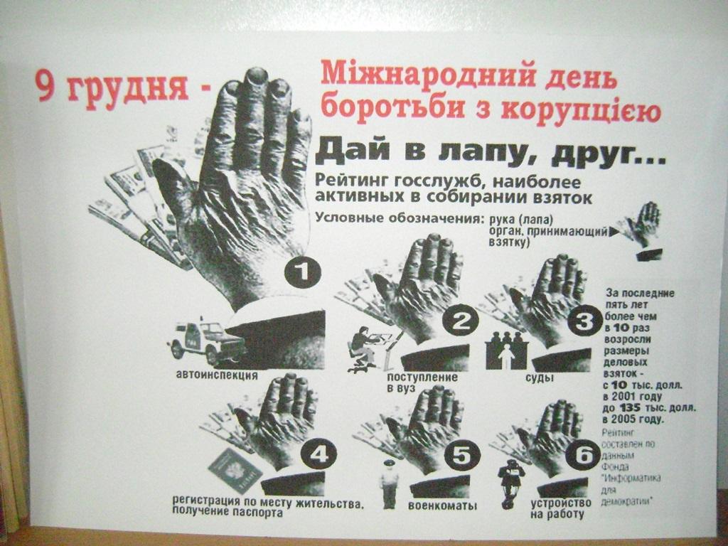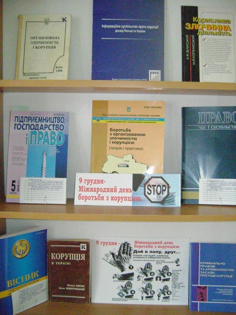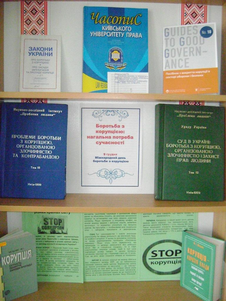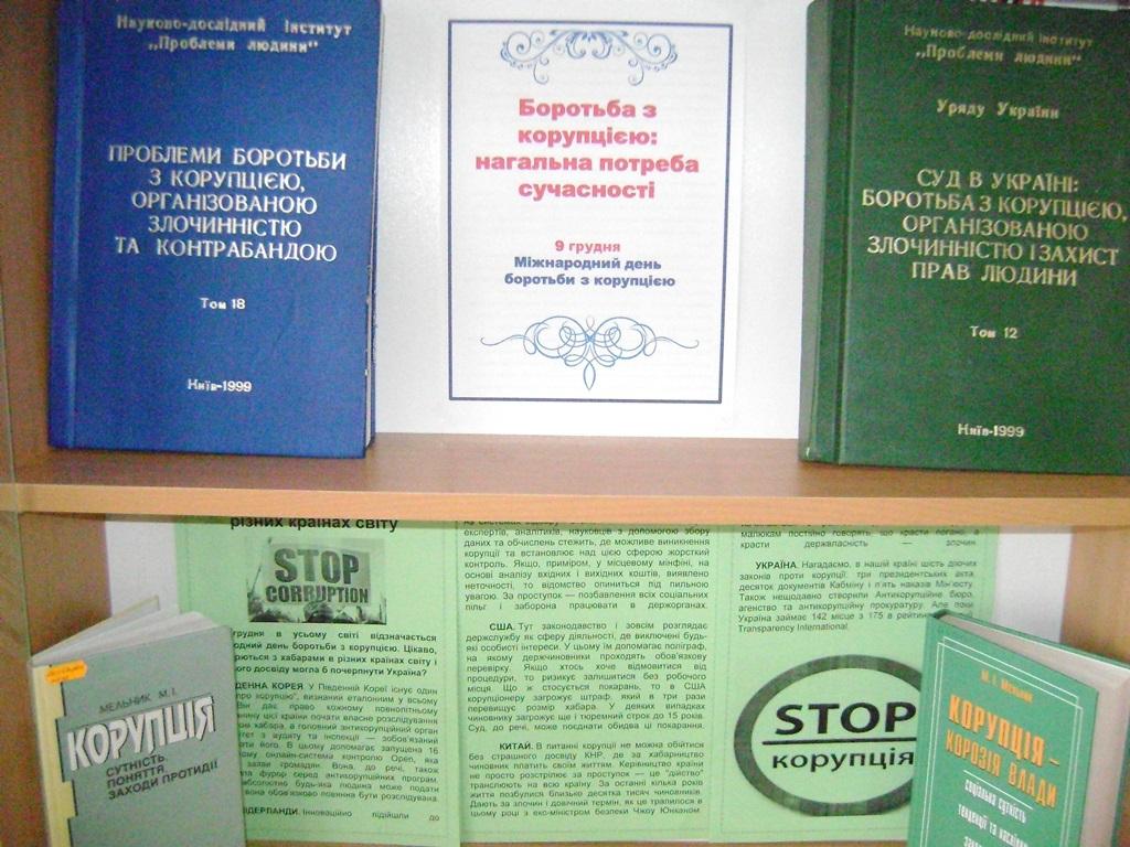 З метою інформування користувачів щодо запобігання та протидії корупційним явищам в бібліотеці створено виставку-інформацію «Боротьба з корупцією: нагальна потреба сучасності».