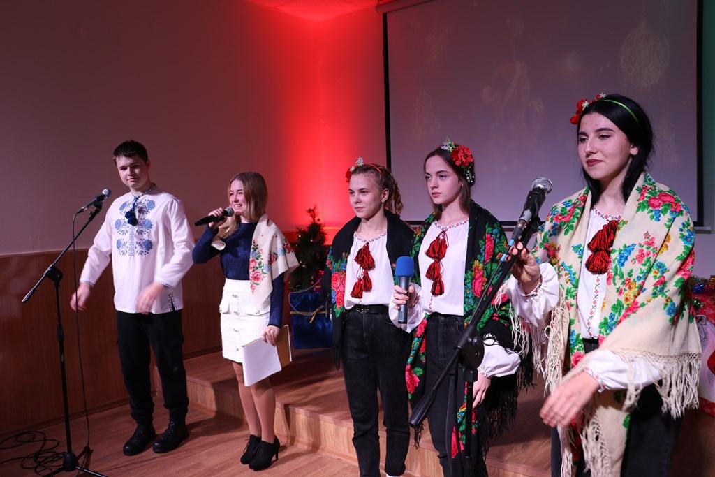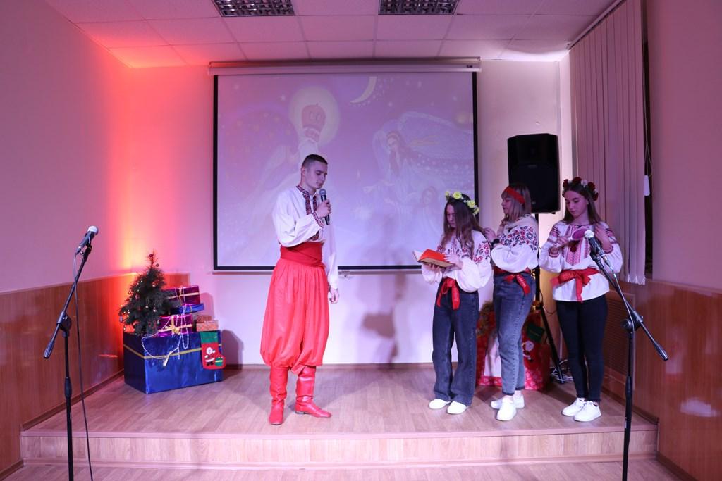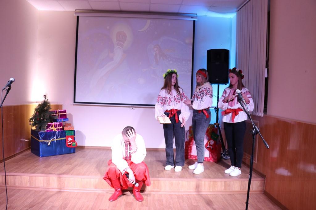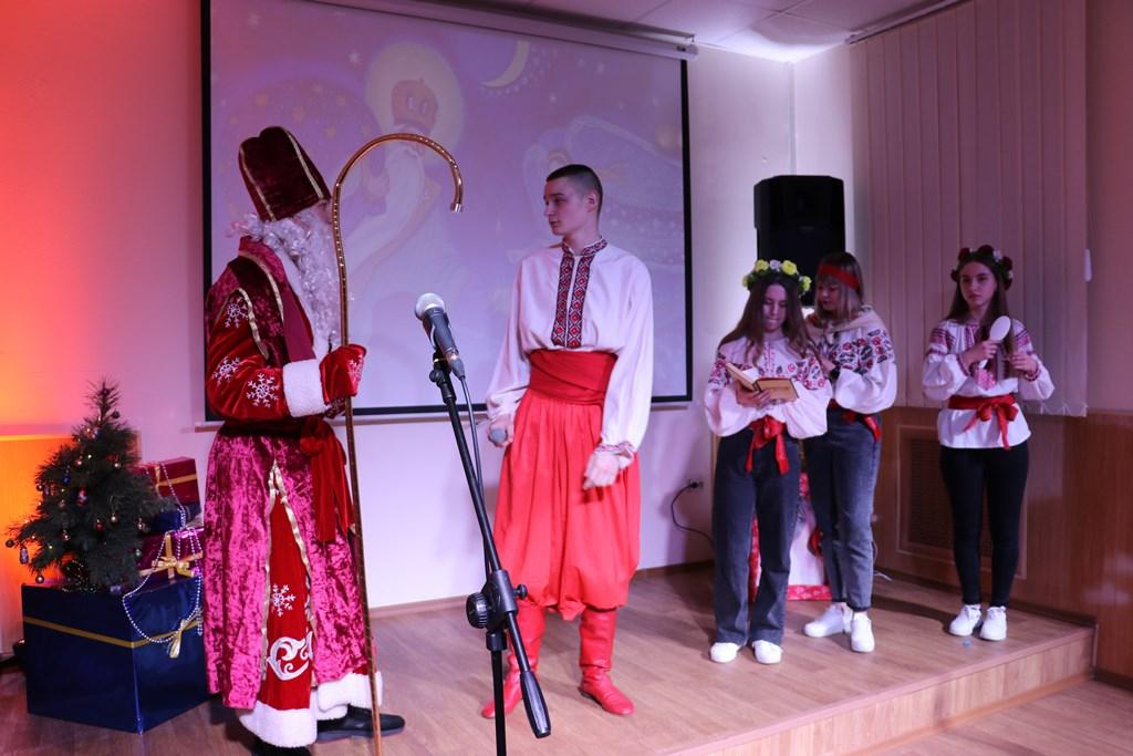 Так, розказали про День Святого Миколая та добрі вчинки святого у театральній сценці «Батько і три доньки», про найголовніше свято – Різдво Христове розповіли колядники, які завітали на свято з Різдвяною зіркою та піснею «Добрий вечір, тобі, пане господарю», новорічні побажання висловили веселі щедрувальники та заспівали «Щедрика» - усесвітньо відомий твір українського композитора Миколи Леонтовича, який був створений на початку XX століття.