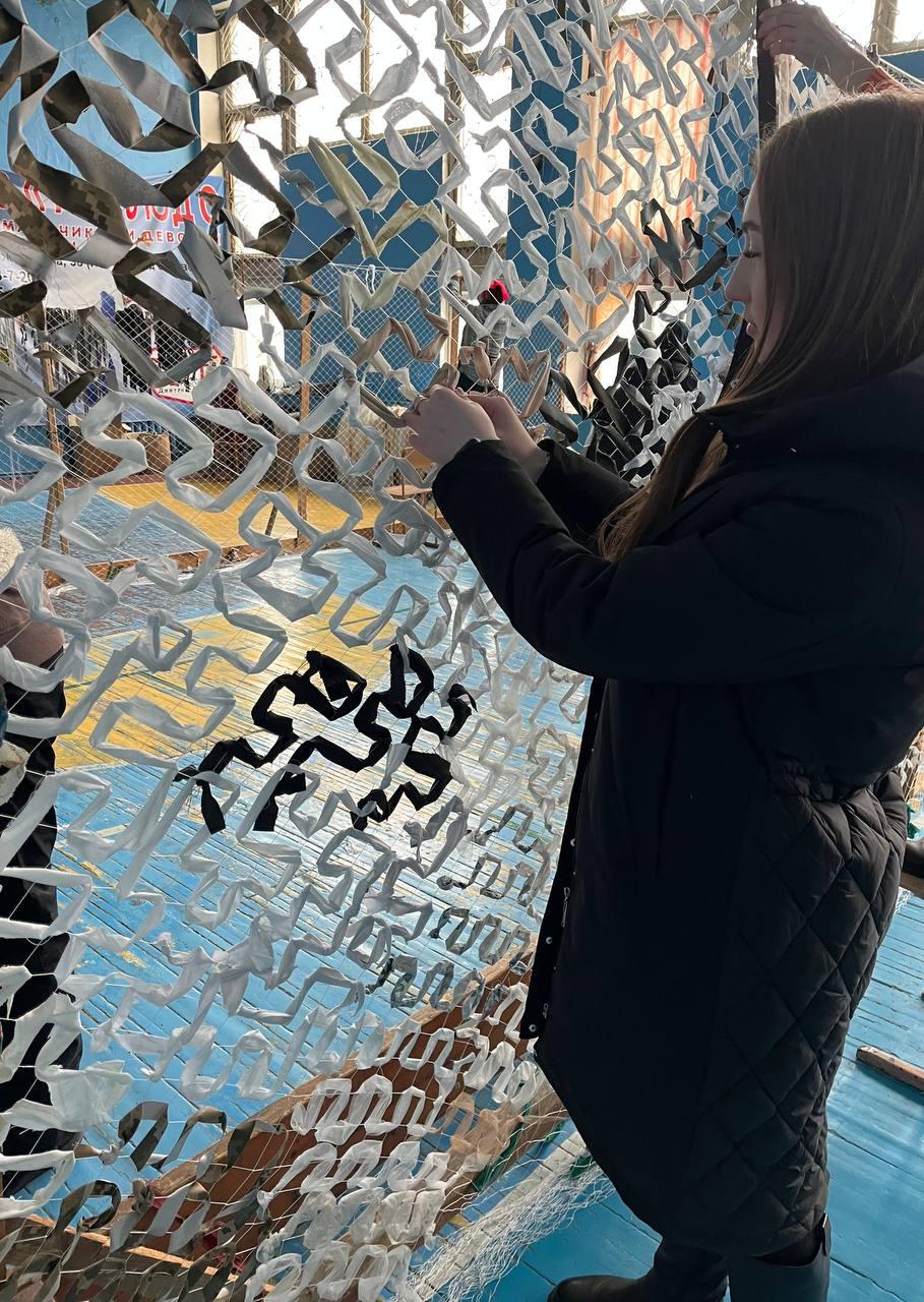 «Плести маскувальні сітки я прийшла вперше, - говорить курсантка 1 курсу Юлія Івченко, і відразу відчула відповідальність за цю кропітку роботу, яку щоденно роблять волонтерки благодійного фонду. Вони спеціально підбирають відтінки тканини та специфіку плетіння, аби наші військові та їхня техніка стала непомітною для ворога».