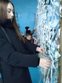 Тож, знаходячись у канікулярній відпустці, студенти та курсанти 1 курсу, а саме: Владислав Барабаш, Марія Ковбас, Івченко Юлія, Овчаров Олександр та Ярова Вікторія у вільний час приходили до Благодійного фонду «Дзеркало добра», щоб допомагати плести маскувальні сітки, які вкрай необхідні для наших військових. Слід зазначити, що волонтерський загін Сумської філії з жовтня місяця співпрацює із даним фондом.