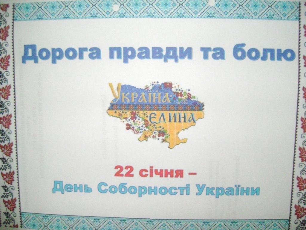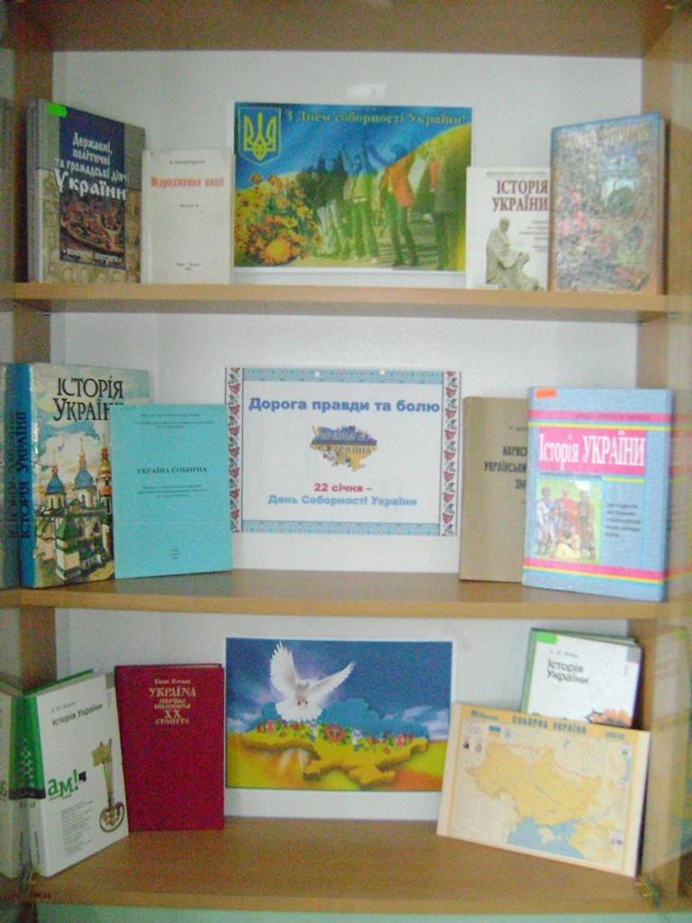 Цій знаменній події присвячена книжково-ілюстративна виставка «Дорога правди та болю». Матеріали, представлені на виставці, акцентують увагу на історичних фактах, що передували злуці, на об’єднавчому русі, який наприкінці 1918-го початку 1919-го року охопив майже всю Україну.