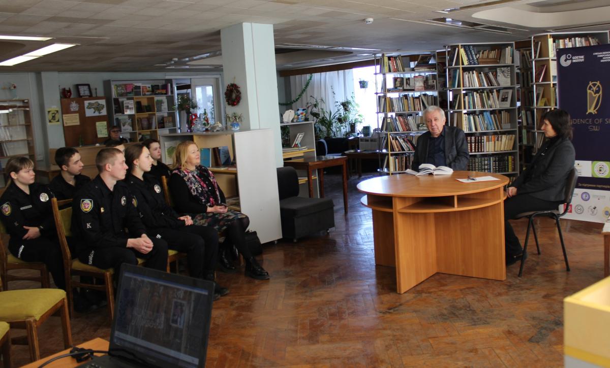 У ході зустрічі курсанти познайомилися із творчим шляхом славетного Майстра та переглянули велику книжкову експозицію, на якій були представлені біографічні, нотні, дослідницькі видання та публікації, присвяченні життю й творчості ювіляра, зокрема, його автобіографічні книги «У серці – рідна Україна», «Знайти себе».