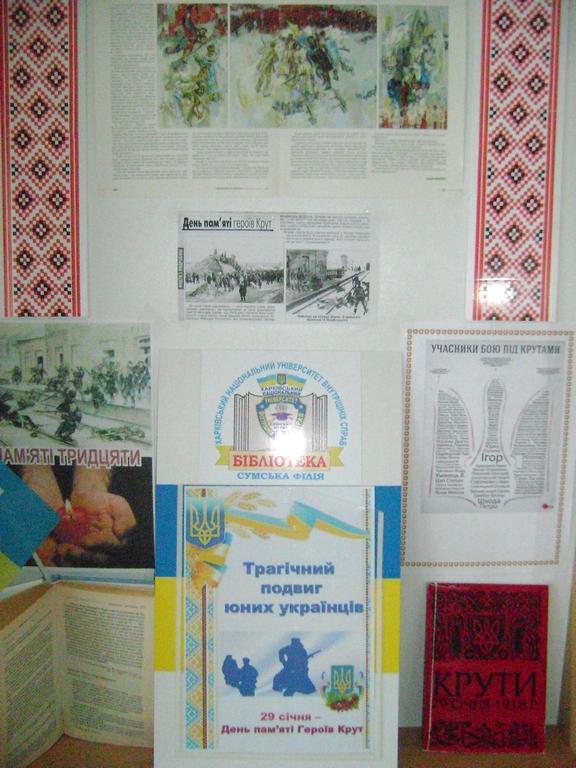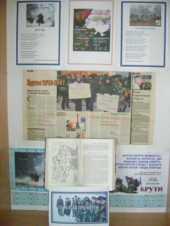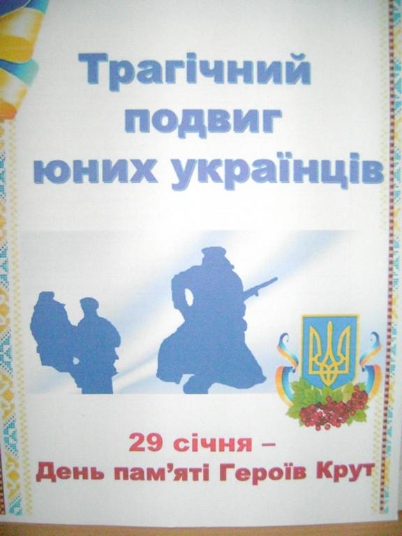 Не можна викреслити з пам’яті той великий безсмертний подвиг юнаків, які захищали українську державність, поклавши на її вівтар найцінніше – власне життя. Саме цій знаменній даті присвячена бібліотечна виставка-пам’ять «Трагічний подвиг юних українців».