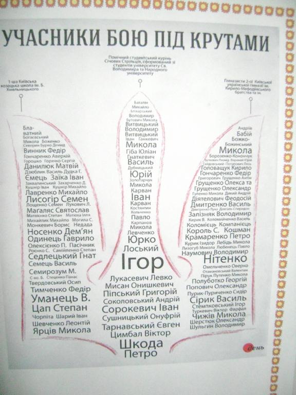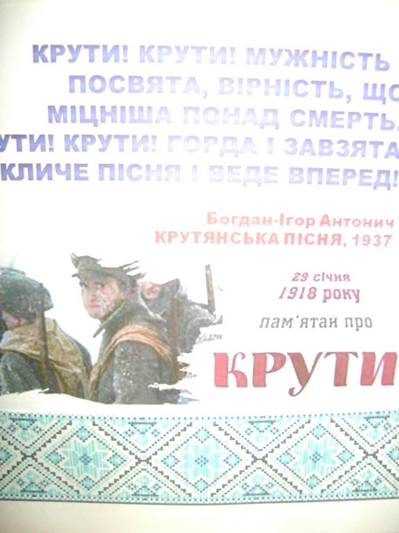 В пам’яті поколінь назавжди залишиться подвиг студентів, що полягли під Крутами в боротьбі за вільну Україну.
