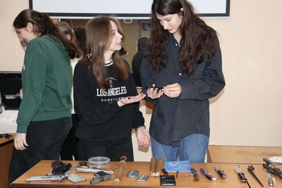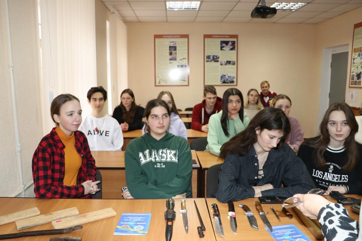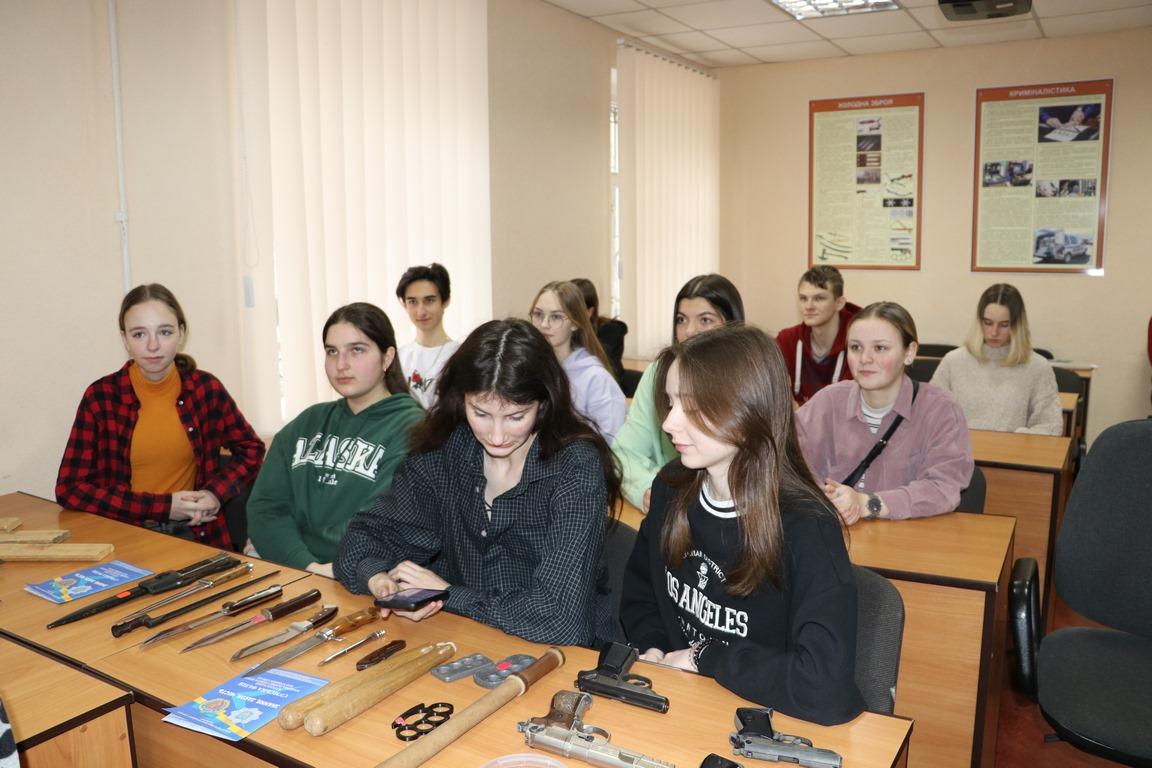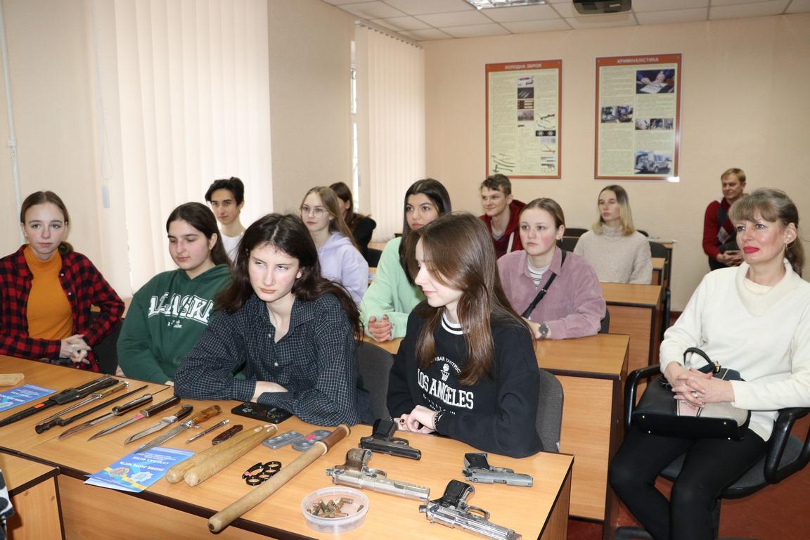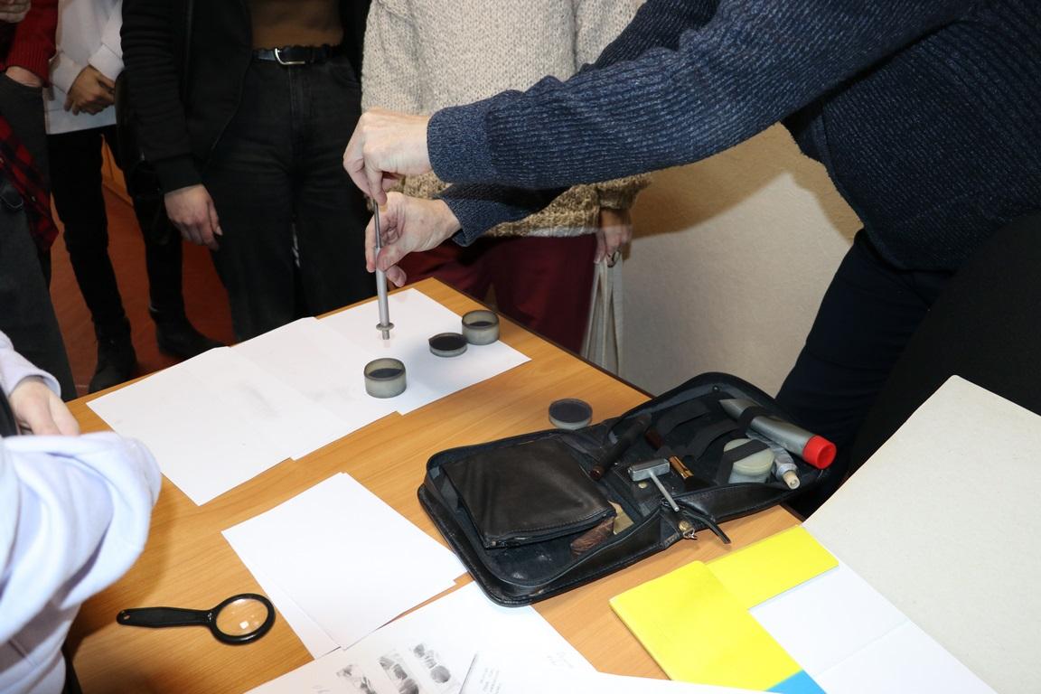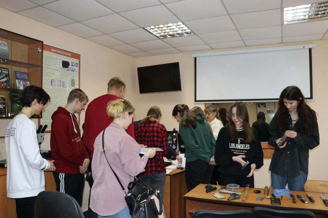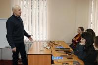 Старший викладач кафедри юридичних дисциплін Сумської філії ХНУВС Віктор Кисельов провів чергову екскурсію у навчальній лабораторії з криміналістики для учнів 11-х класів КУ ССШ №9 міста Суми. На початку екскурсії Віктор Кисельов розповів про спеціальності, за якими навчаються студенти та курсанти Сумської філії, перспективи їх працевлаштування тощо. Під час екскурсії учні із захопленням сприймали інформацію криміналіста-практика про те, як правильно можна виявляти сліди злочинної діяльності, розрізняти фальшиві грошові купюри тощо. Віктор Кисельов продемострував прилади, з якими працюють експерти під час проведення різноманітних досліджень, дозволив учням спробувати їх в роботі.