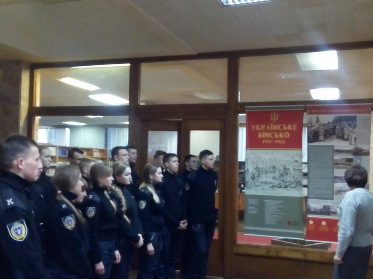 З метою національно-патріотичного виховання та у рамках вшанування пам’яті Героїв Крут курсанти Сумської філії Харківського національного університету внутрішніх справ відвідали Сумську універсальну наукову бібліотеку, де переглянули виставку «Українське військо: 1917-1921», підготовлену Українським інститутом національної пам’яті.