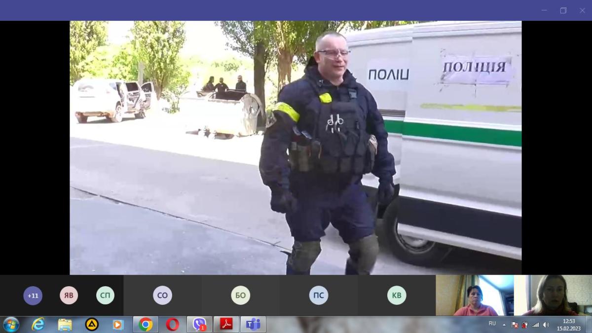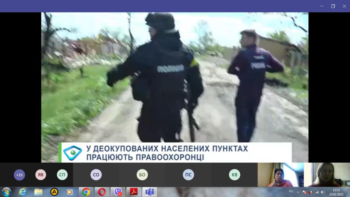 Напередодні річниці повномасштабного вторгнення російської армії в Україну доцент кафедри гуманітарних дисциплін Сумської філії ХНУВС Ганна Довгополова провела з учнями ліцею онлайн-зустріч. Виховна бесіда була присвячена висвітленню особливостей роботи поліції під час війни – попередження диверсій, зачищення деокупованих територій від ДРГ, евакуація цивільного населення з особливо небезпечних районів, посилене патрулювання тощо. Значна кількість працівників поліції несуть службу в Збройних Силах України, ціною власного життя захищаючи незалежність нашої держави.