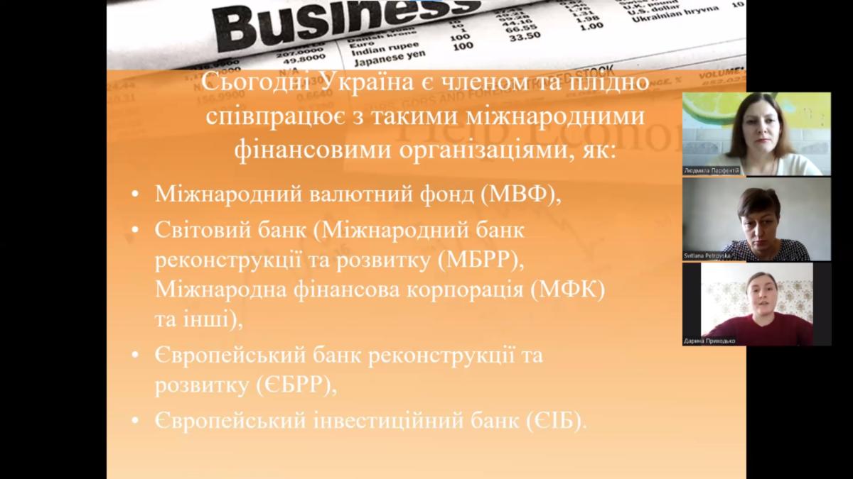 Тема доповіді на сьогоднішній день є дуже актуальною, а сама доповідь, презентована студенткою, виявилася змістовною та інформативною, оскільки було проаналізовано фінансову допомогу Україні від інших держав і міжнародних фінансових організацій з метою економічної підтримки нашої держави під час війни.