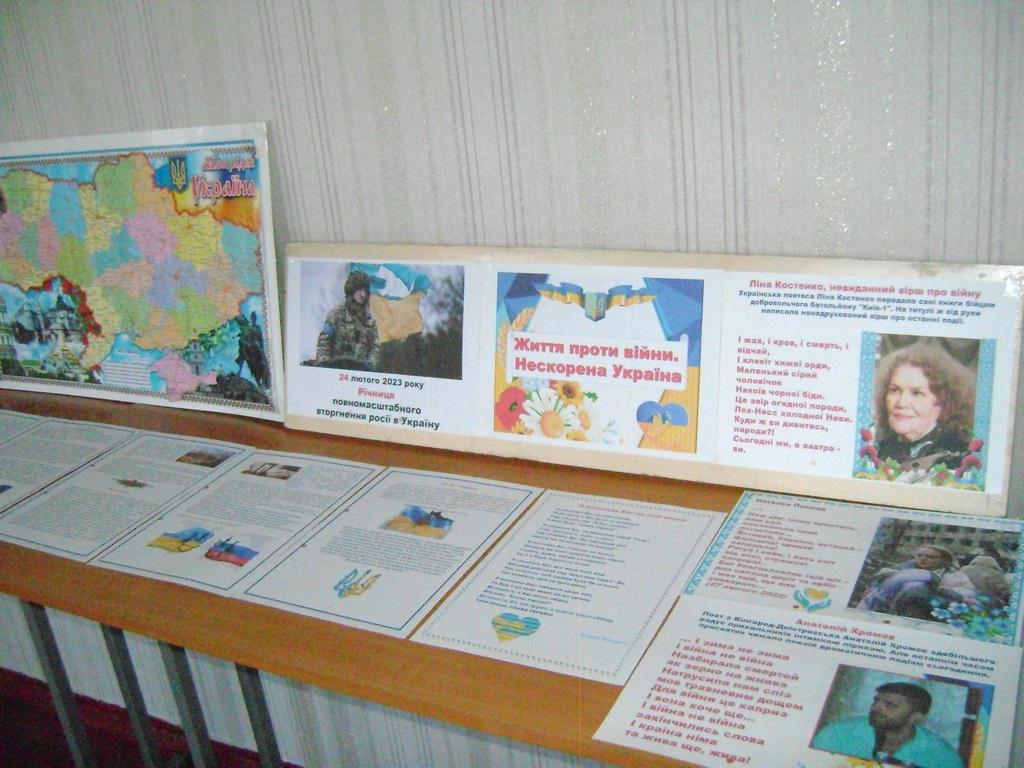 До річниці повномасштабного вторгнення росії в Україну в бібліотеці представлена тематично-інформаційна викладка «Життя проти війни. Нескорена Україна», де висвітлені події початку війни; історія стосунків українського і російського народів щодо воєн, визвольних повстань українців, послідовної русифікації та геноциду нашого народу.