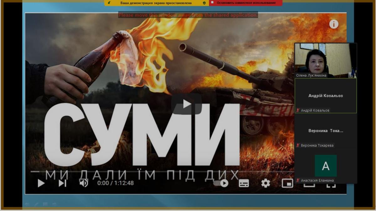 Із нагоди Дня пам’яті Героїв Небесної Сотні й роковин широкомасштабного вторгнення російської федерації в Україну завідувачка кафедри соціально-економічних дисциплін Сумської філії ХНУВС Олена Лук’янихіна провела кураторську виховну годину зі студентами групи СФ ПД дср-19-1 спеціальності «Правоохоронна діяльність».