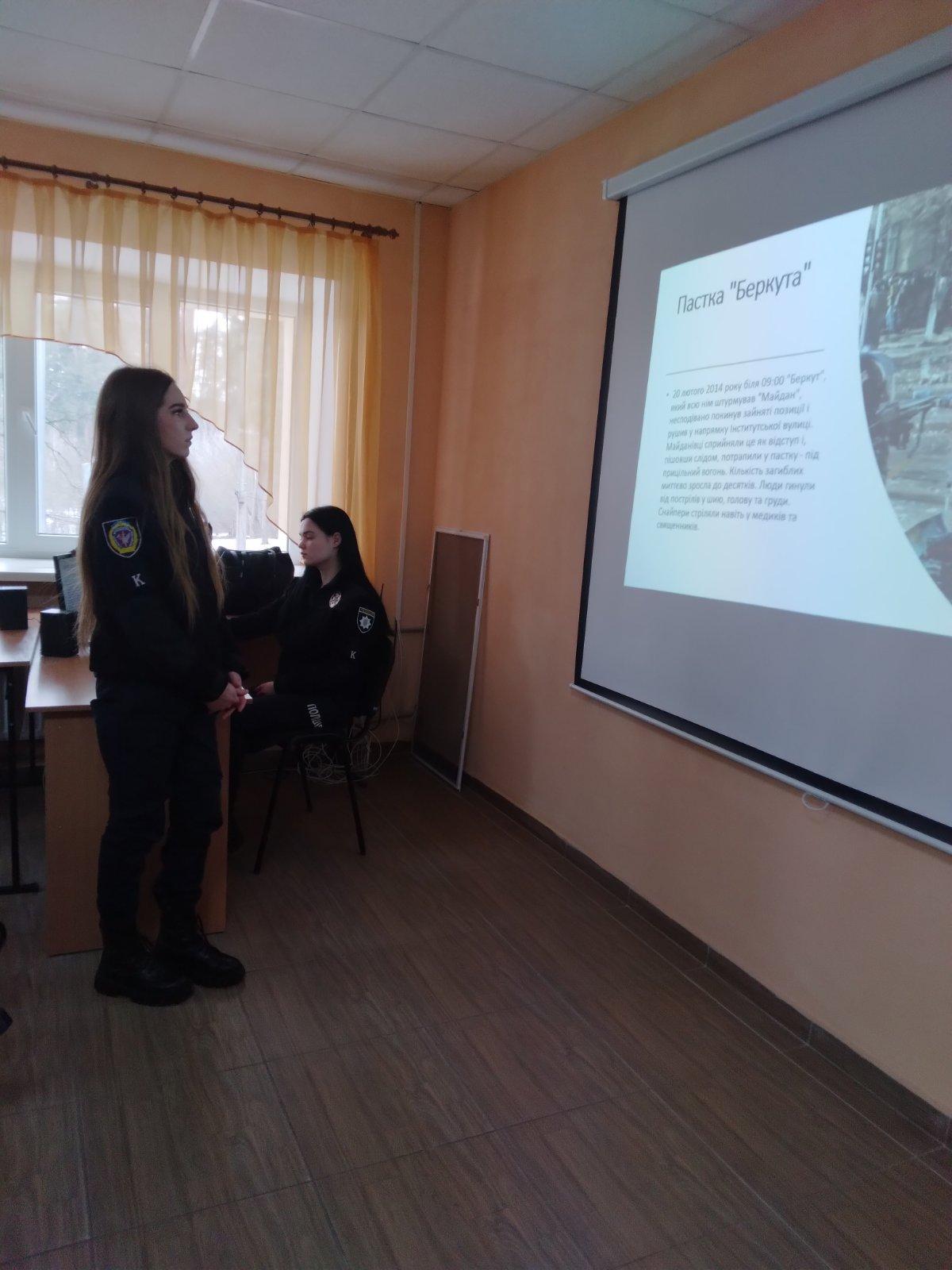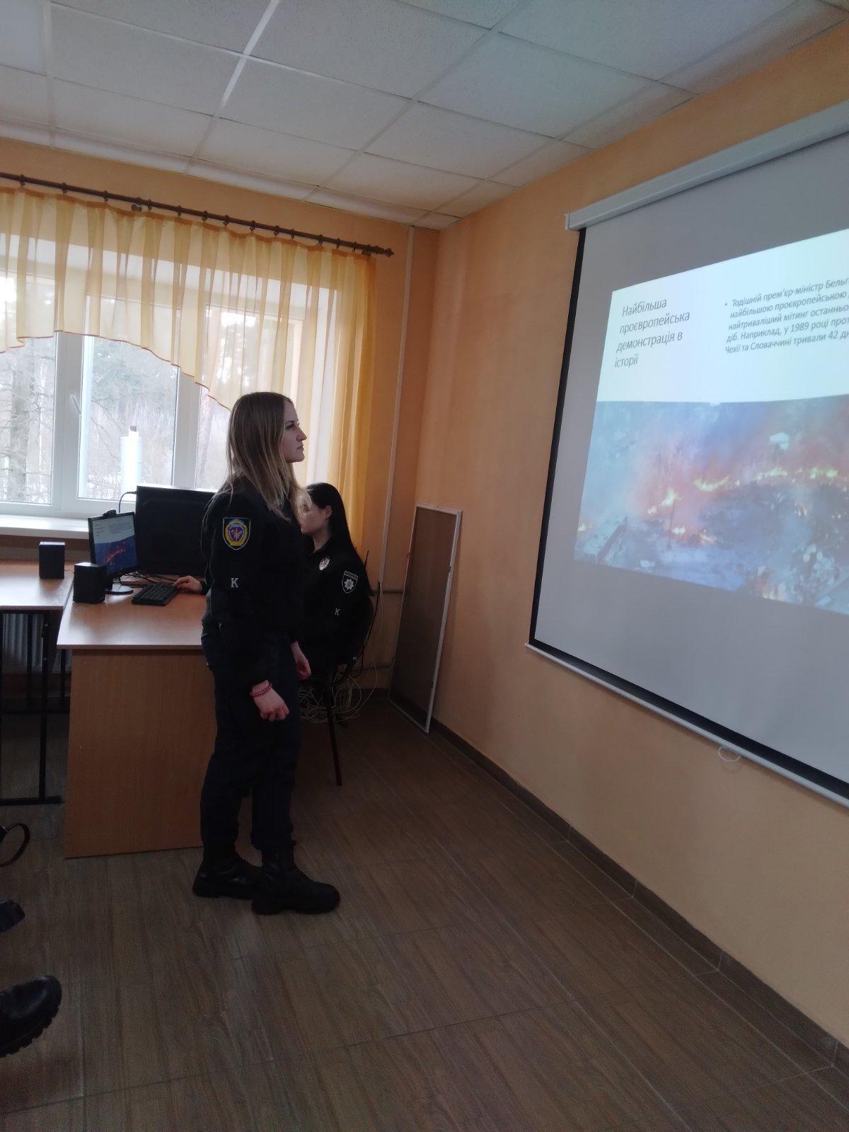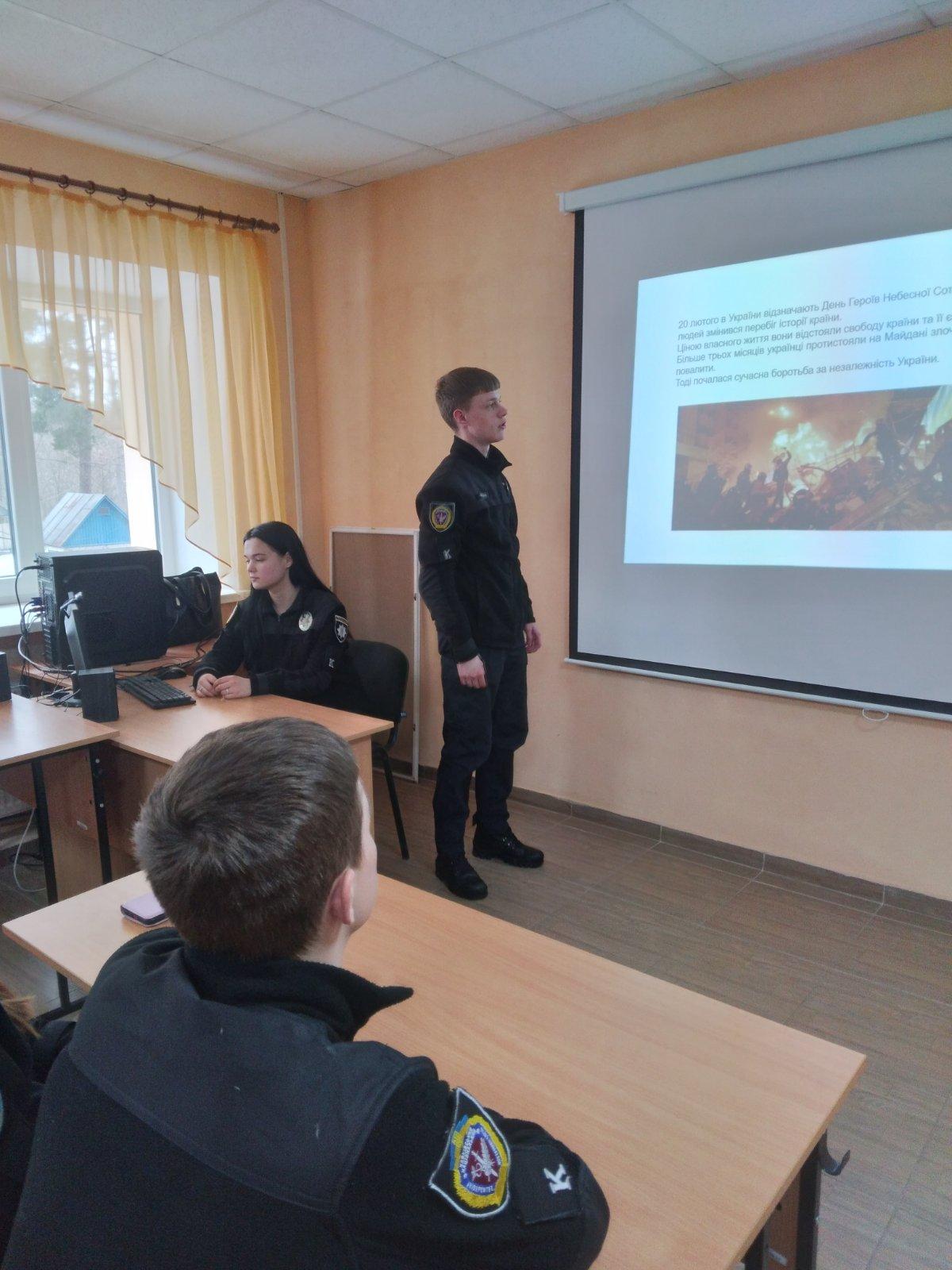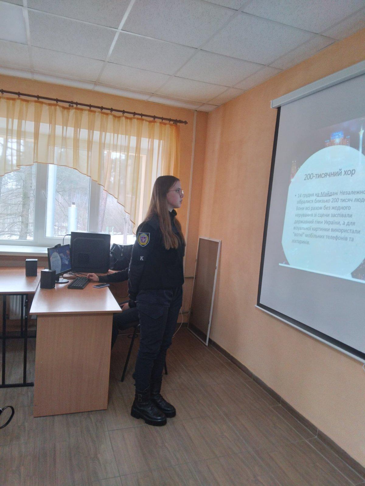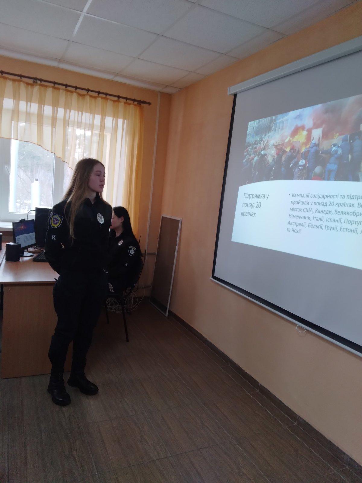 Днями пройшла тематична курсаторська година на тему «Подвиг українського народу в боротьбі за незалежність», присвячена річниці збройного повномаштабного вторгнення росії в Україну, а також, вона була організована і проведена з патріотичною метою доцентом кафедри соціально-економічних дисциплін Сумської філії ХНУВС Світланою Миколаївною Виганяйло для курсантів другого курсу групи СФ-203.