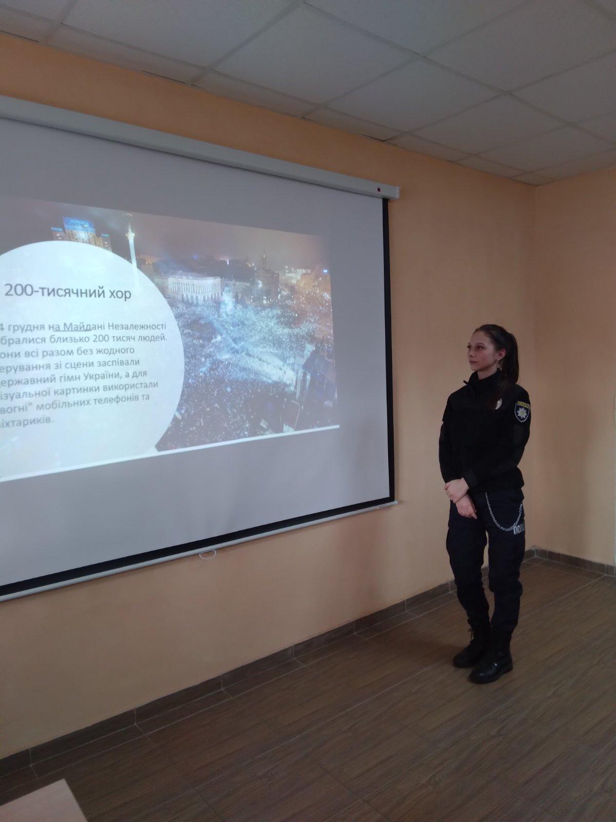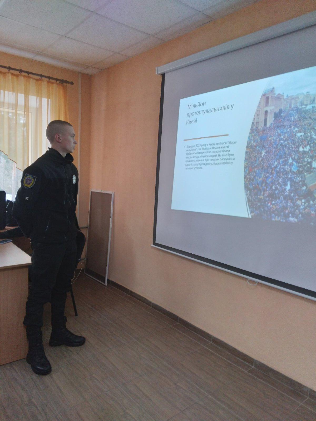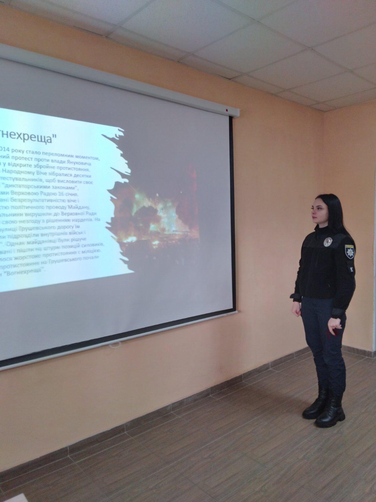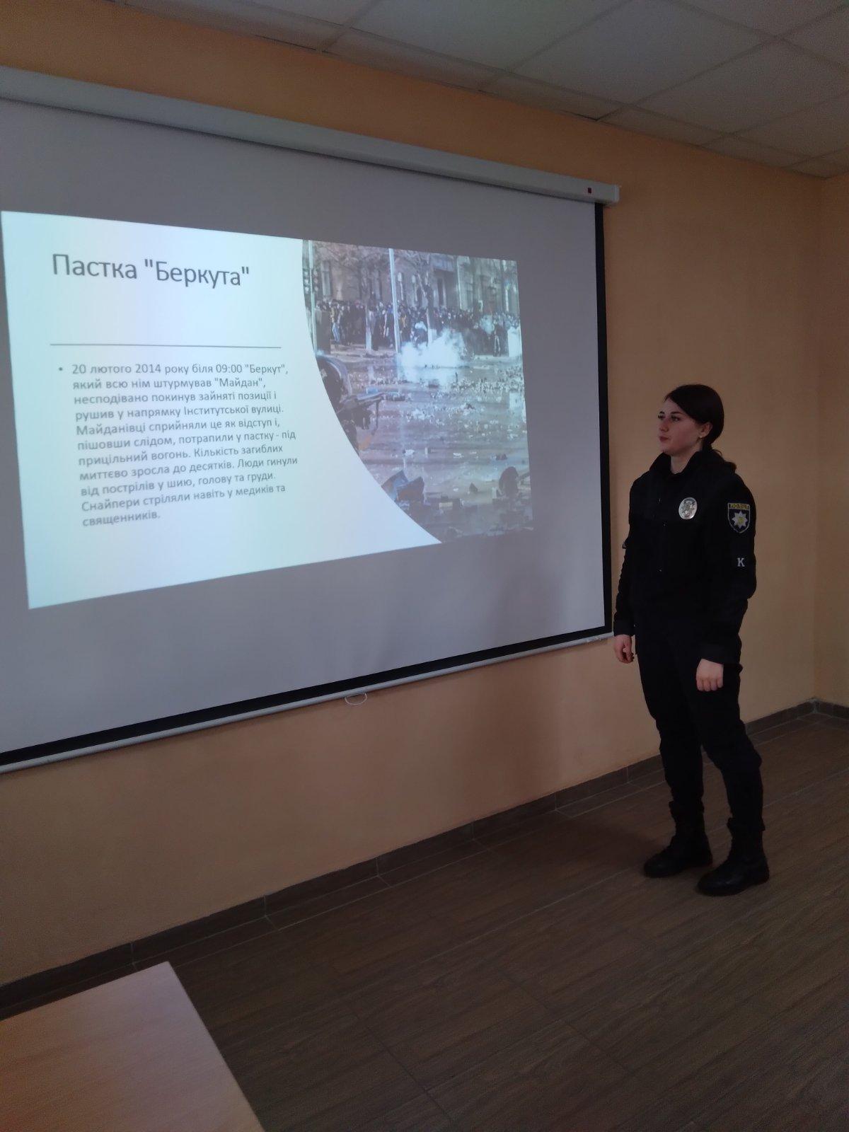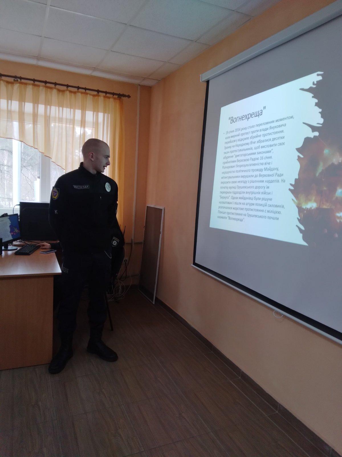 Днями пройшла тематична курсаторська година на тему «Подвиг українського народу в боротьбі за незалежність», присвячена річниці збройного повномаштабного вторгнення росії в Україну, а також, вона була організована і проведена з патріотичною метою доцентом кафедри соціально-економічних дисциплін Сумської філії ХНУВС Світланою Миколаївною Виганяйло для курсантів другого курсу групи СФ-203.