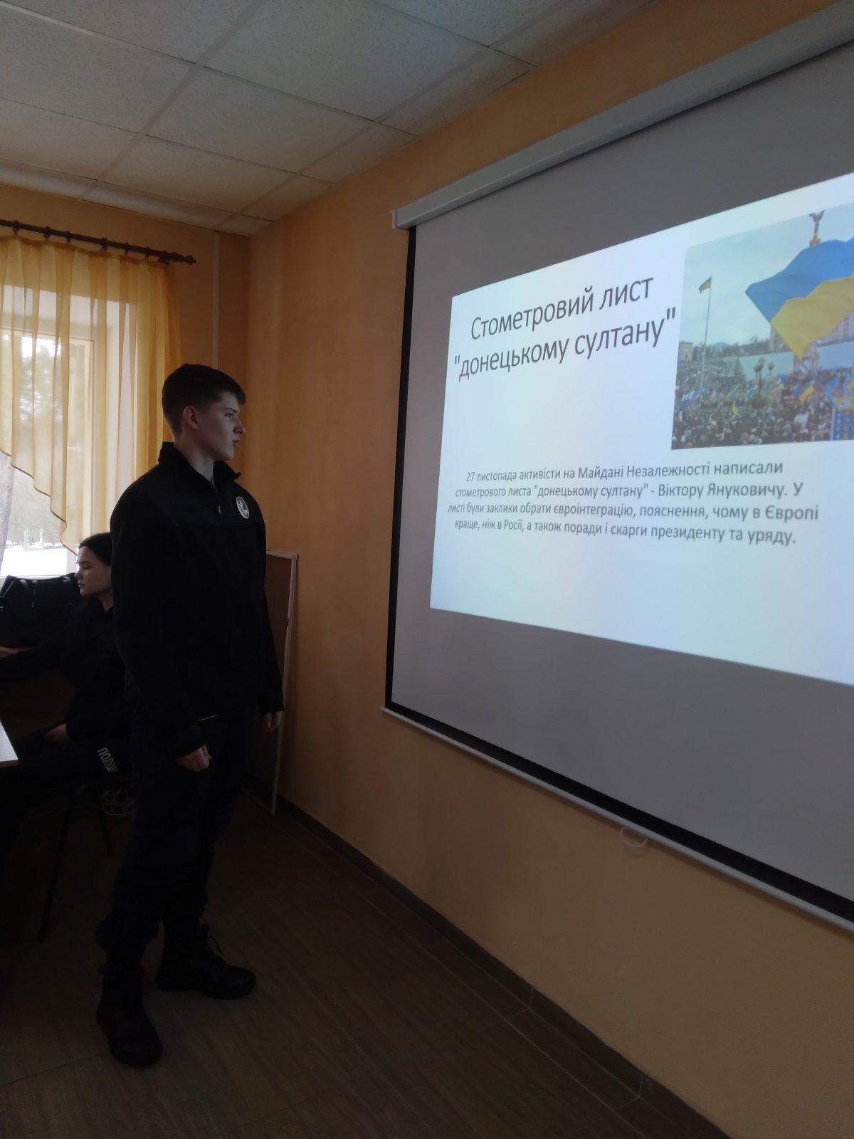 Курсанти активно долучились до дослідження історичного шляху боротьби українського народу за волю і незалежність у різні періоди становлення української державності. Боротьба за незалежну Україну була довгим та складним процесом, який тривав багато десятиліть. Україна пройшла багато періодів залежності від інших держав, але з часом стала все більш самодостатньою та здатною до боротьби за свої права та свою незалежність.