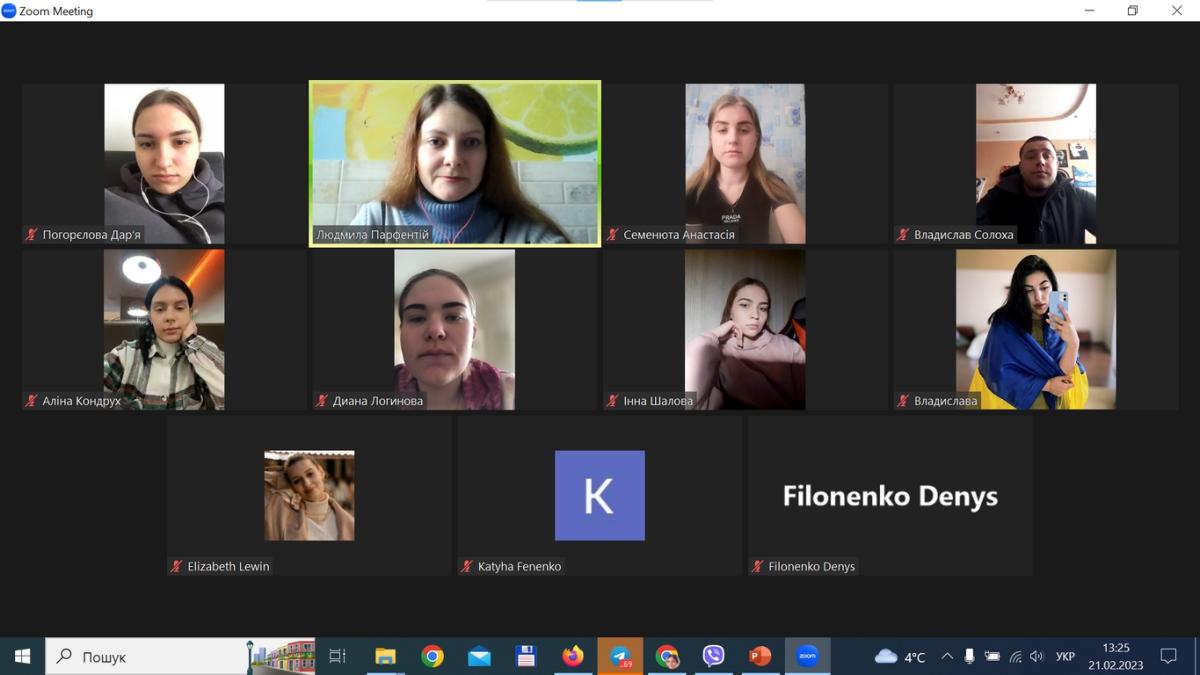 У рамках Плану Харківського національного університету внутрішніх справ з виконання розпорядження Кабінету Міністрів України від 27 лютого 2021 року № 112-р «Про затвердження плану заходів із вшанування подвигу учасників Революції Гідності та увічнення пам’яті Героїв Небесної Сотні», а також з нагоди річниці початку повномасштабного вторгнення рф в Україну кандидатом економічних наук, доцентом кафедри соціально-економічних дисциплін Сумської філії ХНУВС Парфентій Людмилою Анатоліївною в режимі відеоконференції було проведено кураторську годину зі студентами третього курсу групи СФ-ПДдср-20-1 спеціальності «Правоохоронна діяльність». Під час зустрічі було обговорено значення подвигу учасників Революції Гідності для українського державотворення, початок збройної агресії рф у 2014 році та повномасштабне вторгнення в Україну 24 лютого 2022 року, а також патріотизм, мужність і героїзм українського народу, що проявлялися у поведінці і вчинках українців у кожен із зазначених періодів.