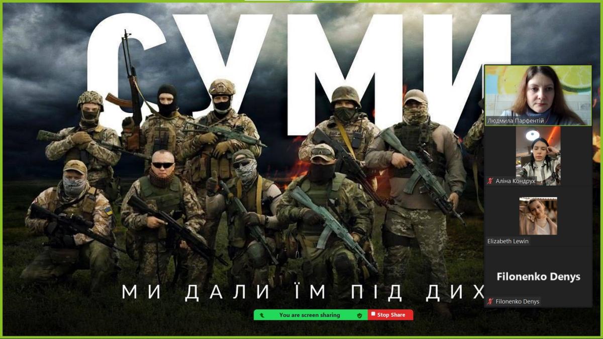 Не винятком стали сум’яни та жителі Сумщини. У Сумській області найдовший кордон із країною-агресором. Через нього з перших днів повномасштабного вторгнення заходили велетенські колони ворожої техніки, а місцеві жителі брали до рук зброю і йшли зупиняти ворога, як уміли. Історії тих, хто сміливо зустрічав ворога біля порога своєї домівки, зафіксували в документальному фільмі “Суми. Ми дали їм під дих”, який було обговорено зі студентами на кураторській годині.