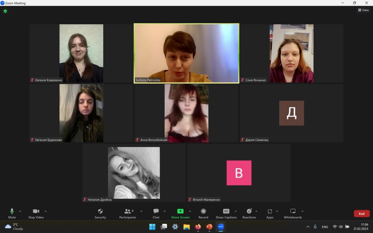 Із нагоди Дня пам’яті Героїв Небесної Сотні та роковин широкомасштабного вторгнення російської федерації в Україну доцентка кафедри соціально-економічних дисциплін Сумської філії ХНУВС Світлана Петровська провела кураторську виховну годину зі студентами четвертого курсу групи СФдср-19-1 спеціальності «Право» в онлайн режимі.