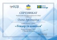 Участь Олени Лук’янихіної у тренінгу підтверджена сертифікатом, а обговорені аспекти є дотичними до напрямків досліджень і можуть бути використані в освітньому процесі.