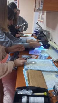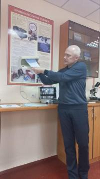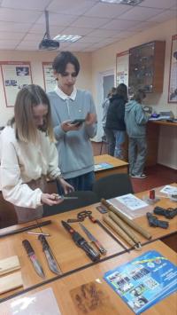 Змістовну екскурсію провів досвідчений криміналіст, старший викладач кафедри юридичних дисциплін Віктор Кисельов. Школярі разом із класним керівником Інною Іванівною дізнались від Віктора Миколайовича про особливості криміналістичної техніки, види холодної та вогнепальної зброї, специфіку інструментарію при розслідуванні різного роду злочинів. Практична частина екскурсії викликала у гостей жвавий інтерес. Вони перевіряли справжність грошових купюр і документів, робили відбитки пальців, обережно розглядали пістолети й ножі і задали Віктору Миколайовичу безліч питань.
