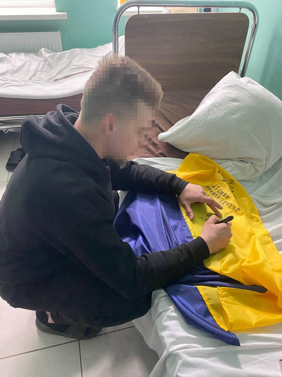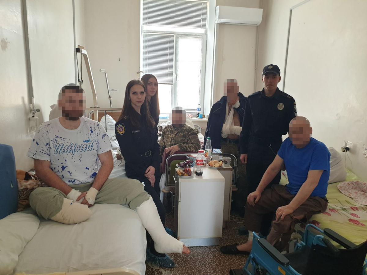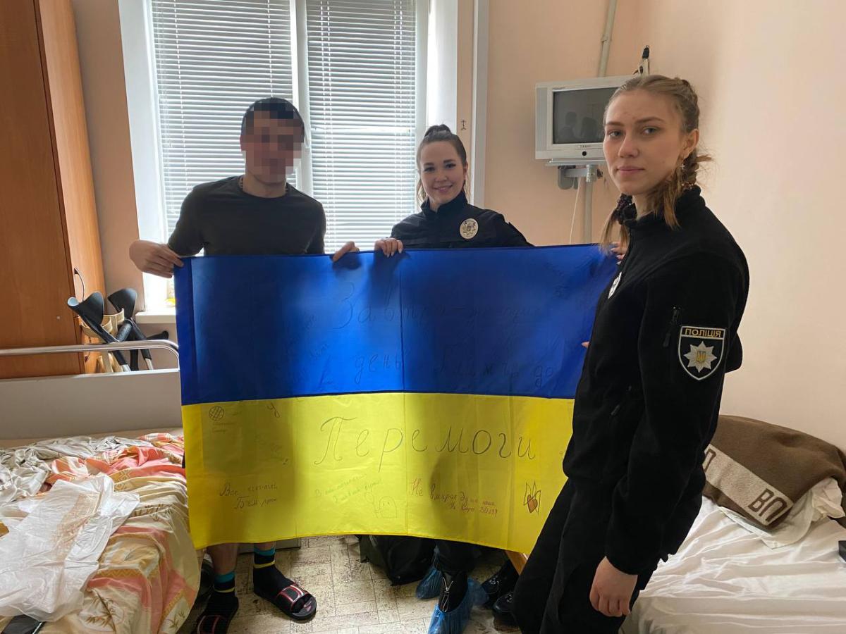 Курсанти-волонтери Сумської філії Харківського національного університету внутрішніх справ продовжують відвідувати поранених та підтримувати військових. Цими днями волонтери завітали до однієї із лікарень міста, де наразі після поранень у бою відновлюють сили наші захисники. Одного із бійців чарівні курсантки ще й привітали з Днем народження, зробили світлину разом із іменинником, подарували Прапор України із щирими побажаннями, який буде служити йому оберегом. Сильні духом воїни, в свою чергу, на згадку про щире знайомство із курсантами залишили свої автографи, почуття та думки.