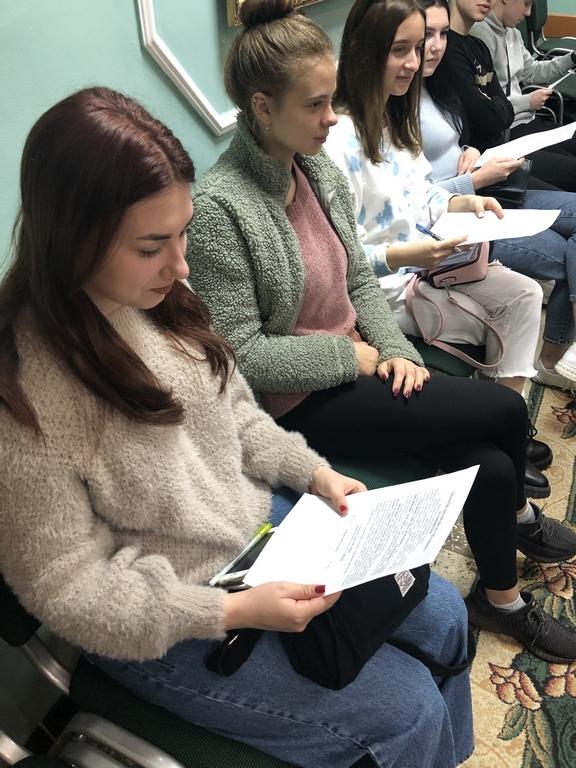 Про особливості функціонування нотаріату розповіла головний спеціаліст Центрального відділу з питань нотаріату Управління нотаріату Катерина Захарченко. Вона принесла для студентів зразки документів, розповіла про особливості здійснення своєї діяльності нотаріусами у округах Сумської області.