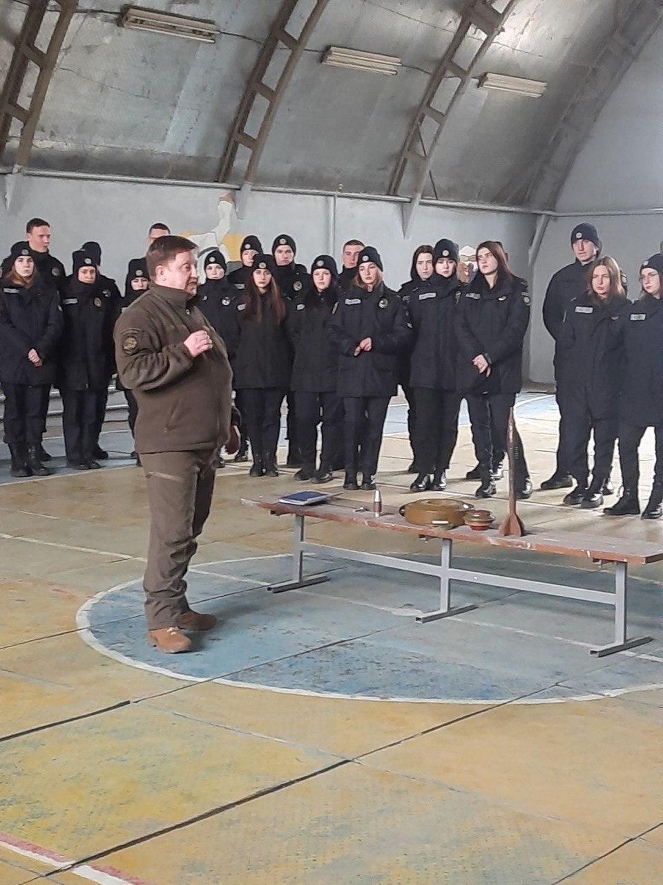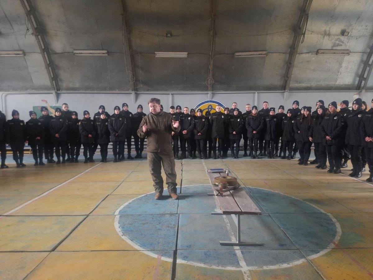 Олександр Миколайович розповів курсантам, що головне правило для них – не чіпати вибухонебезпечний пристрій при його виявленні, а викликати та дочекатися фахівців-вибухотехніків.