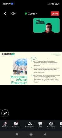 Здобувачі вищої освіти Сумської філії Харківського національного університету внутрішніх справ курсант 1 курсу Вікторія Ярова та студентки 1 курсу спеціальності Правоохоронна діяльність Наталія Закаблуківська і Діана Лук'яненко взяли участь у онлайн - зустрічі, що проводилася у рамках Школи амбасадорів, на тему "Можливості для молоді від ЄС", організатором якої стала Агенція Промоції "Суми". Спікерами зустрічі виступили Посли европейської молоді в Україні: Марія Кобченко, Олег Майборода, Софія Галушко. Спікери ознайомили учасників із умовами різних європейських програм та розповіли про можливості для молоді від ЄС, молодіжні обміни Erasmus+, стажування в інституціях ЄС для української молоді. Захід пройшов змістовно і з користю, здобувачі отримали цікаву інформацію.