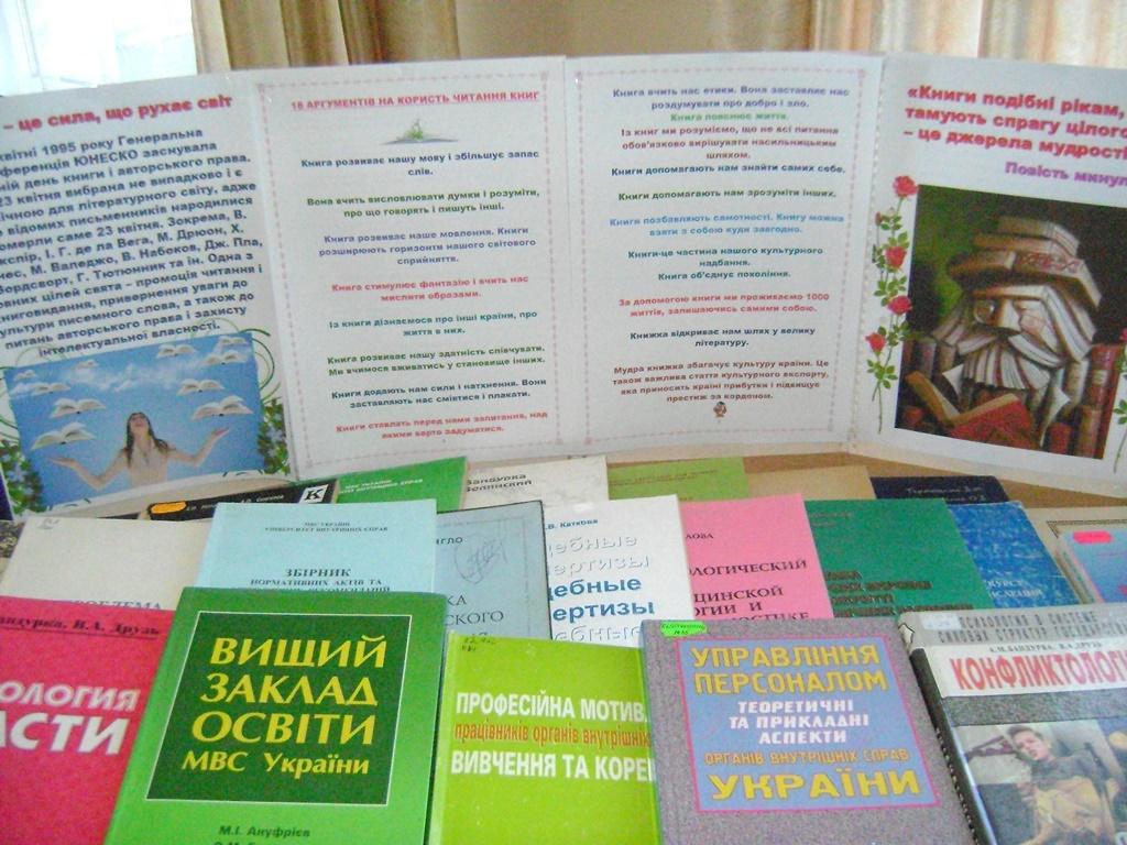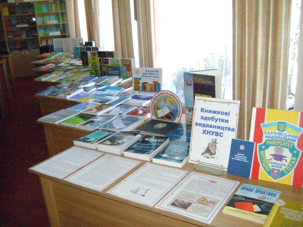 З нагоди свята в бібліотеці організована книжкова виставка-реклама «Книжкові здобутки видавництва ХНУВС», мета якої популяризувати друковану продукцію видавничої діяльності університету, що забезпечує освітній процес навчальною, методичною, довідковою літературою, науковими фаховими виданнями та ін.