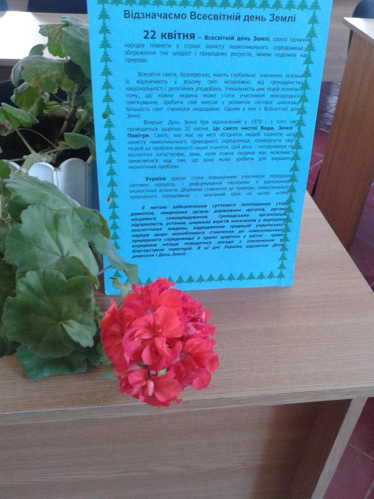 22 квітня відзначається Всесвітній день Землі – загальнолюдське, символічне свято любові та турботи за наш спільний дім. У цей день кожен мешканець планети може зробити свій маленький внесок у справу захисту навколишнього середовища: прибрати від сміття прилеглі території, висадити хоча б одне дерево, відмовитися хоча б на день від використання автомобіля.