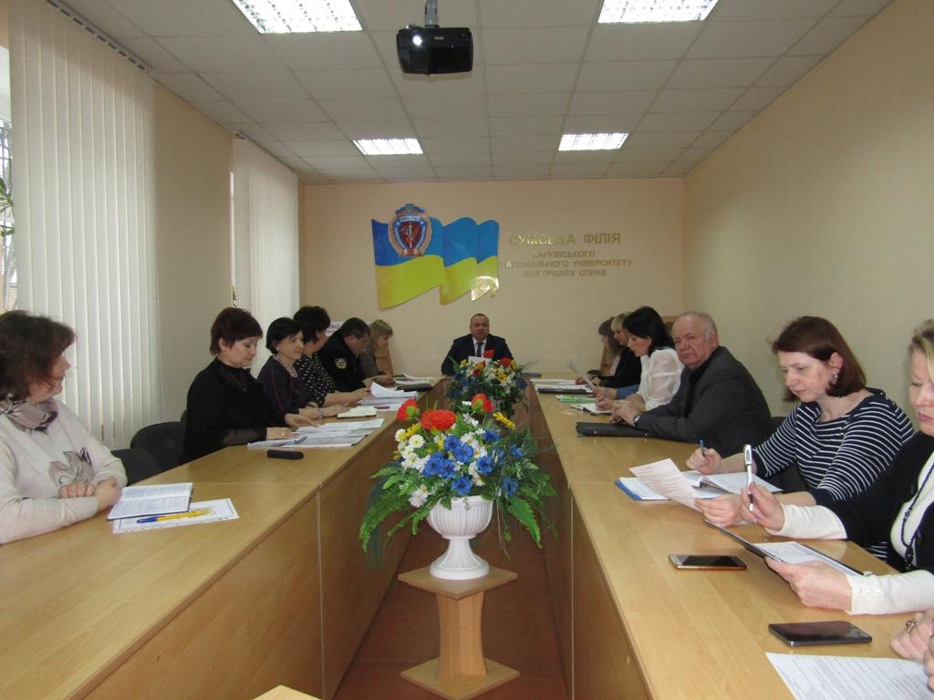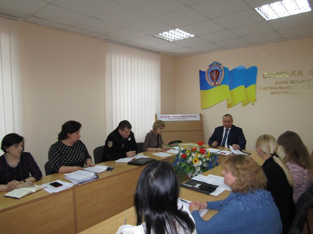 У Сумській філії Харківського національного університету внутрішніх справ відбулося чергове засідання вченої ради. Серед питань, які розглядалися під час засідання, – про результати навчання курсантів, студентів і слухачів у першому семестрі 2019/2020 навчального року; про адаптацію першокурсників до умов навчання в закладі вищої освіти; про іміджеву політику Сумської філії та PR-діяльність: стан та перспективи; про результати роботи кафедр Сумської філії за перше півріччя 2019/2020 навчального року.
