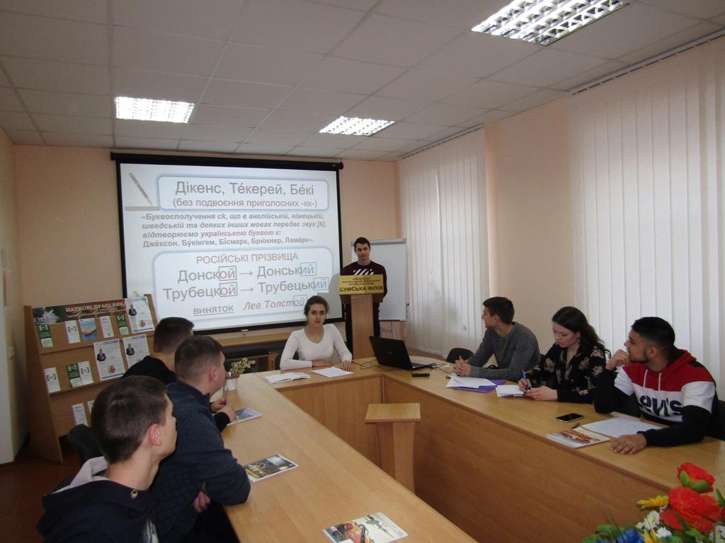 Студенти під керівництвом професора кафедри Валентини Василенко підготували доповіді для участі в дискусії, а також мультимедійні презентації, в яких висвітлили особливості мови і культури як українського народу, так і багатьох інших, що поширені в Україні та у світі в цілому.