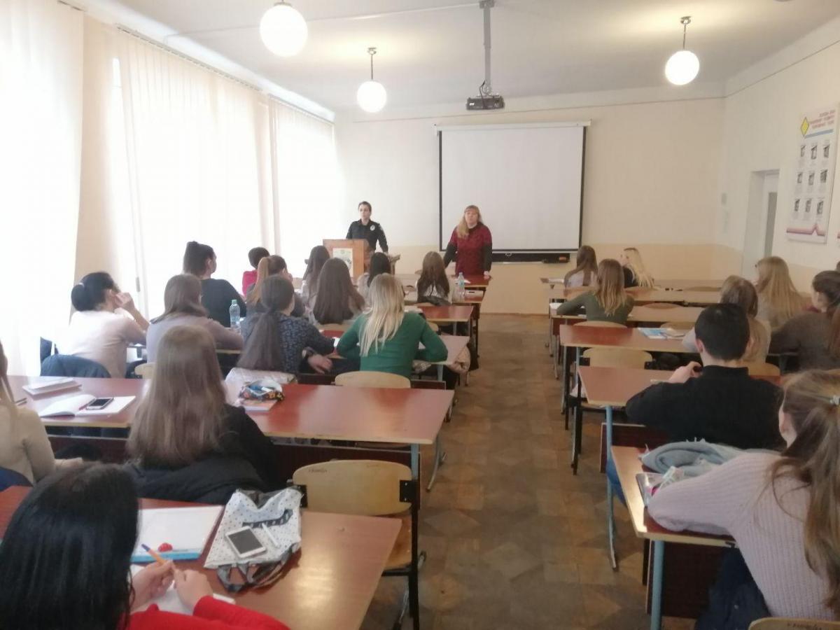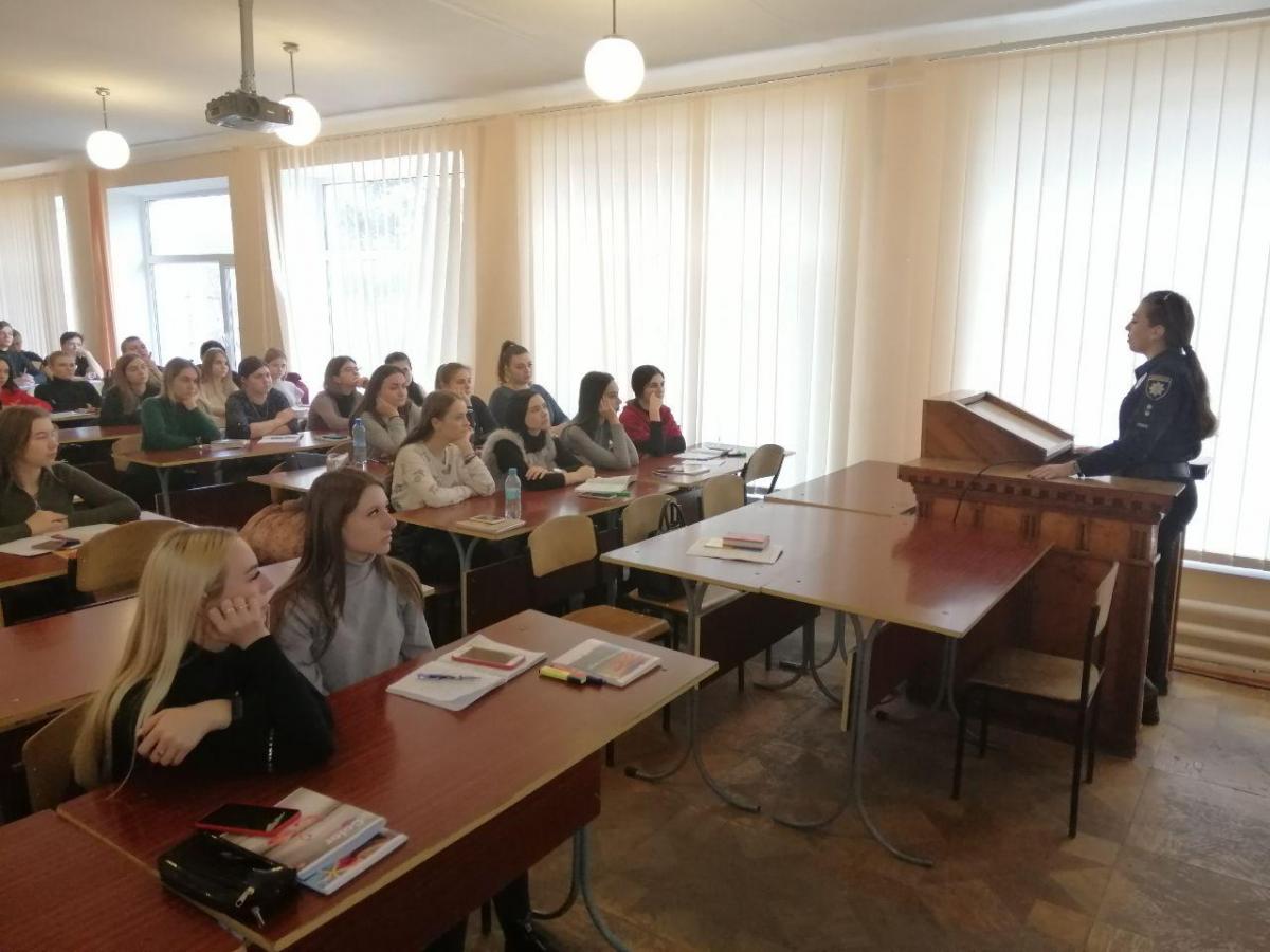 Студенти із великим зацікавленням прослухали розповідь про функції патрульної поліції, статистику адміністративних порушень та злочинів проти громадської безпеки, найбільш цікаві ситуації, які виникали під час виконання службових обов’язків. Було поставлено багато запитань та отримано обґрунтовані висококваліфіковані відповіді.
