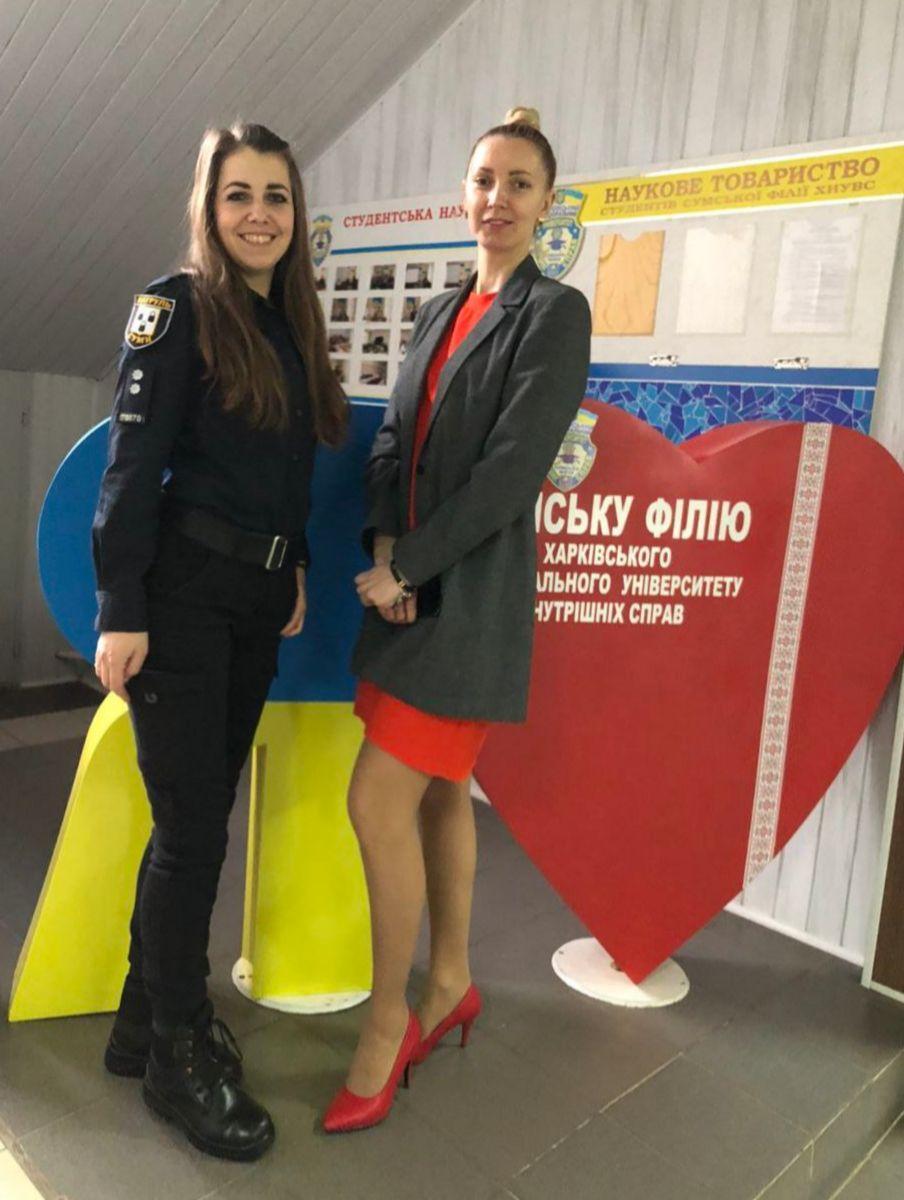 У рамках відзначення 25-річчя Сумської філії Харківського національного університету внутрішніх справ, під керівництвом старшого викладача кафедри юридичних дисциплін Колесник Марини Олександрівни та викладача кафедри Цвітани Сергіївни Баранової було проведено бінарне заняття для студентів 3-го курсу денної форми навчання з дисципліни кримінальне право на тему: ««Злочини проти громадської безпеки» за участі випускниці Сумської філії ХНУВС 2011 року, інспектора роти № 4 Управління патрульної поліції в місті Суми лейтенанта поліції Ярмоленко Юлії Юріївни.
