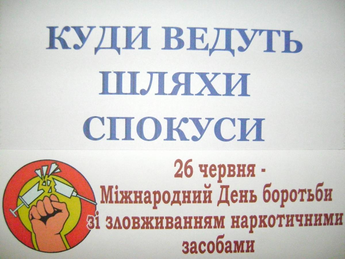 З метою популяризації здорового способу життя, викликати в молоді негативне ставлення до наркоманії, до вживання наркотиків, які завдають великої шкоди здоров᾿ю людини, В БІБЛІОТЕЦІ ДЛЯ КОРИСТУВАЧІВ ОФОРМЛЕНО ВИСТАВКУ - АКЦЕНТ «КУДИ ВЕДУТЬ ШЛЯХИ СПОКУСИ»