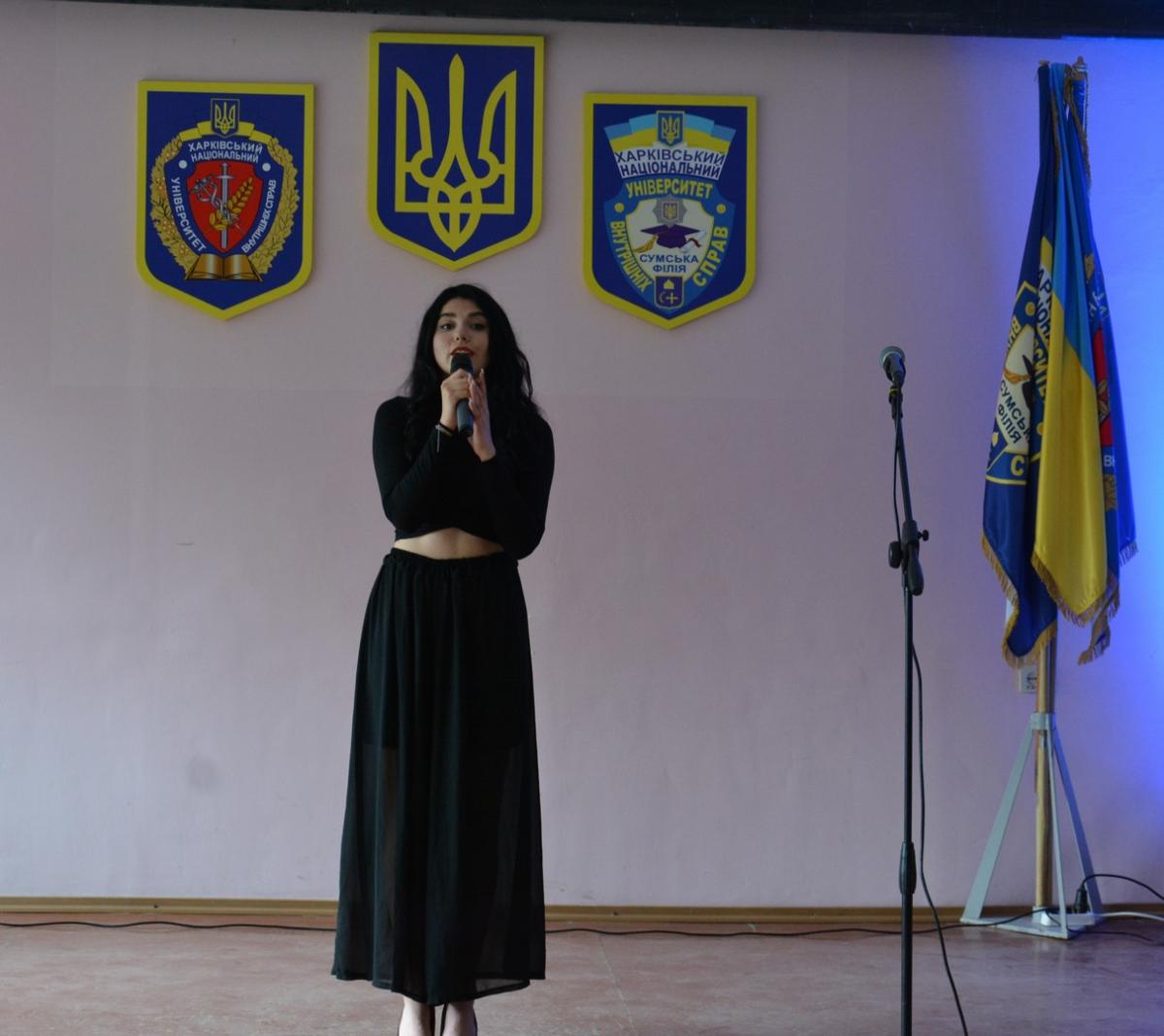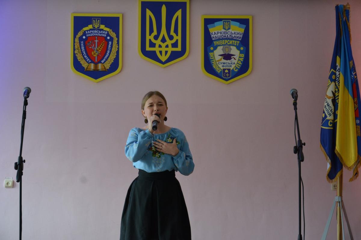 У Сумській філії Харківського національного університету внутрішніх справ відбувся творчий звіт вокальної студії «Натхнення» під гаслом «Співаймо за Україну, за її Незалежність, за Волю її», присвячений 27-й річниці Конституції України. На концерті були присутні викладачі, курсанти та слухачі первинної професійної підготовки «Академія поліції».