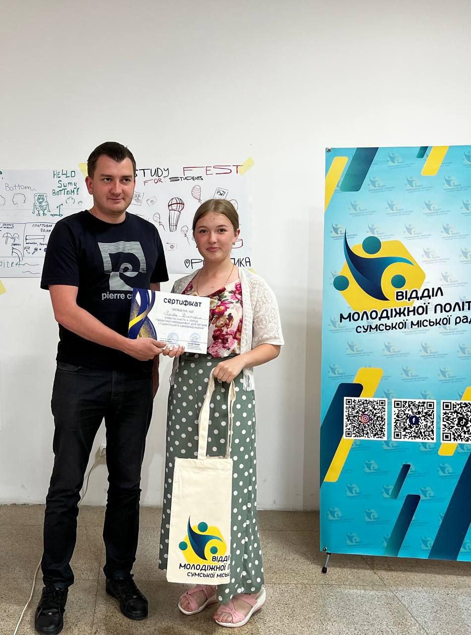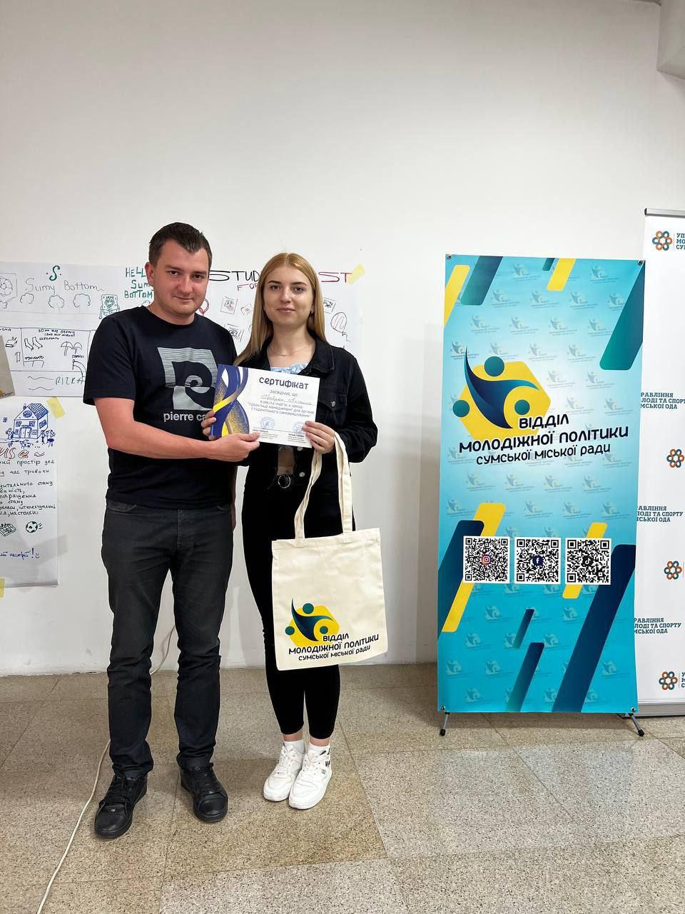11 липня курсанти Сумської філії Харківського національного університету внутрішніх справ Вікторія Ярова, Ангеліна Правдюк та Аліна Шевченко взяли участь у заході "Проектний менеджмент для органів студентського самоврядування", який організував Відділ молодіжної політики Сумської міської ради спільно з Управлінням молоді та спорту Сумської ОДА.
