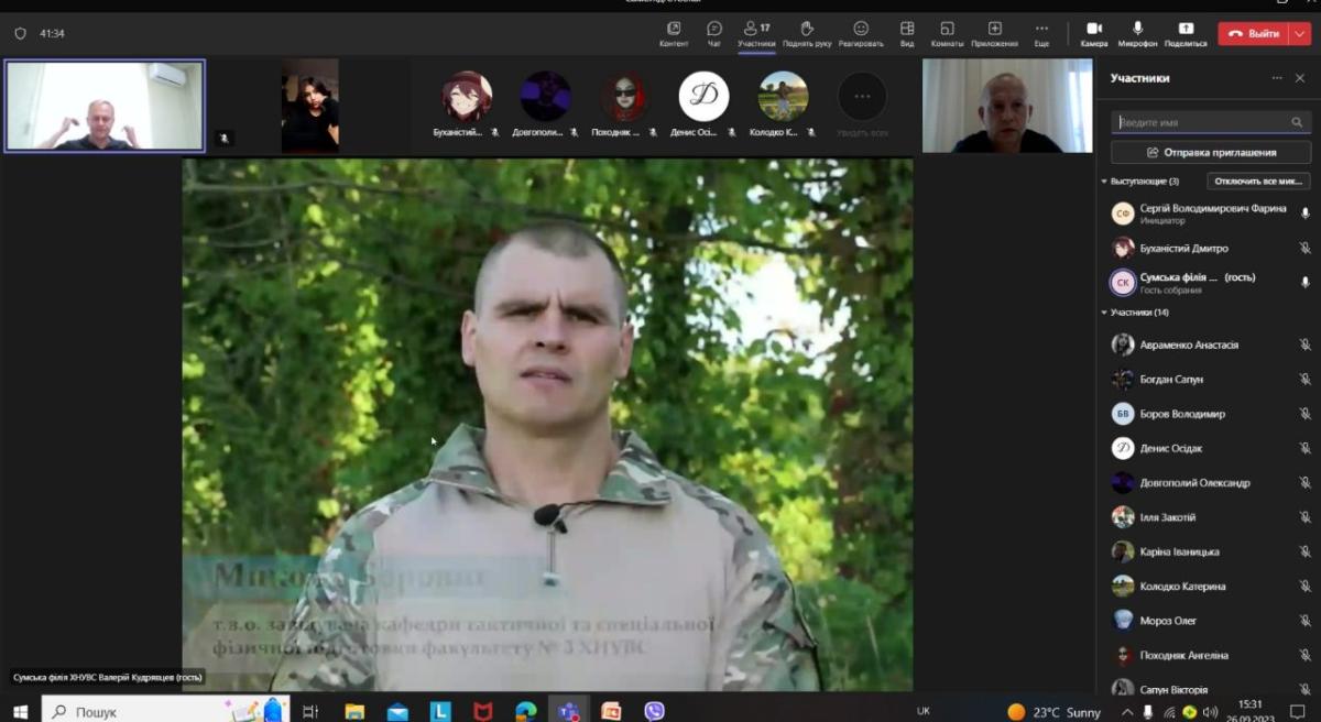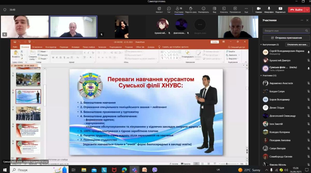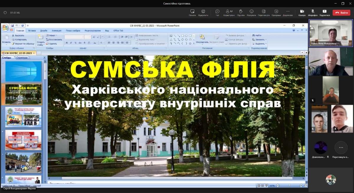 На виконання наказу ХНУВС та проведеного закріплення ліцеїв із посиленою військово-фізичною підготовкою за локаціями університету провідним фахівцем Сумської філії Валерієм Кудрявцевим налагоджена взаємодія та проведена онлайн-зустріч із випускниками комунального закладу Сумської обласної ради «Глухівський ліцей-інтернат з посиленою військово-фізичною підготовкою».