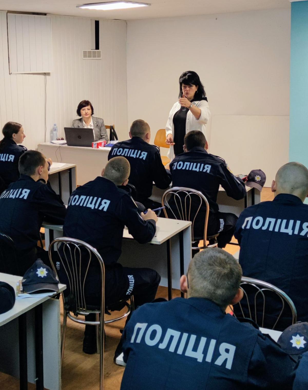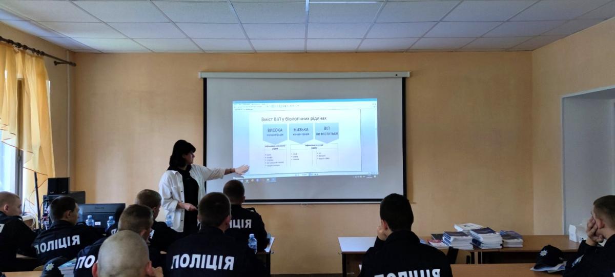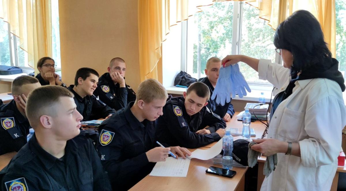 За ініціативи завідувача кафедри соціально-економічних дисциплін Сумської філії ХНУВС, кандидата економічних наук, доцента Олени Лук’янихіної для курсантів-першокурсників у рамках дисципліни «Особиста безпека поліцейського» з теми «Поліцейський в системі «людина – життєве середовище» представниками КНП СОР «Обласний клінічний медичний центр соціально небезпечних захворювань» було проведено тренінг «Підвищення рівня обізнаності представників правоохоронних органів стосовно ВІЛ/СНІДу та ЗПТ».