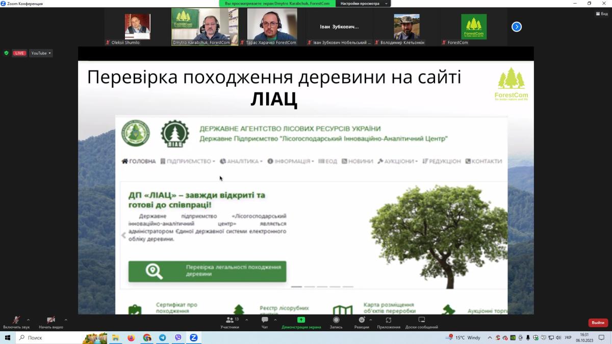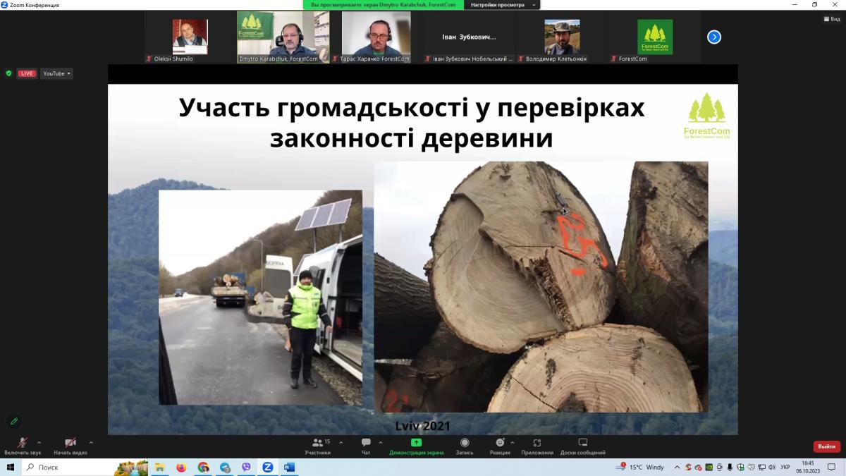 Тема вебінару була присвячена практичним навичкам щодо визначення координатів зрубаного дерева та як перевірити законність перевезення деревини (автомобілем та за допомогою бирки). Цей захід відбувався в межах проєкту «Програма боротьби з лісовими злочинами в Україні» за підтримки відділу міжнародних програм Лісової служби США.