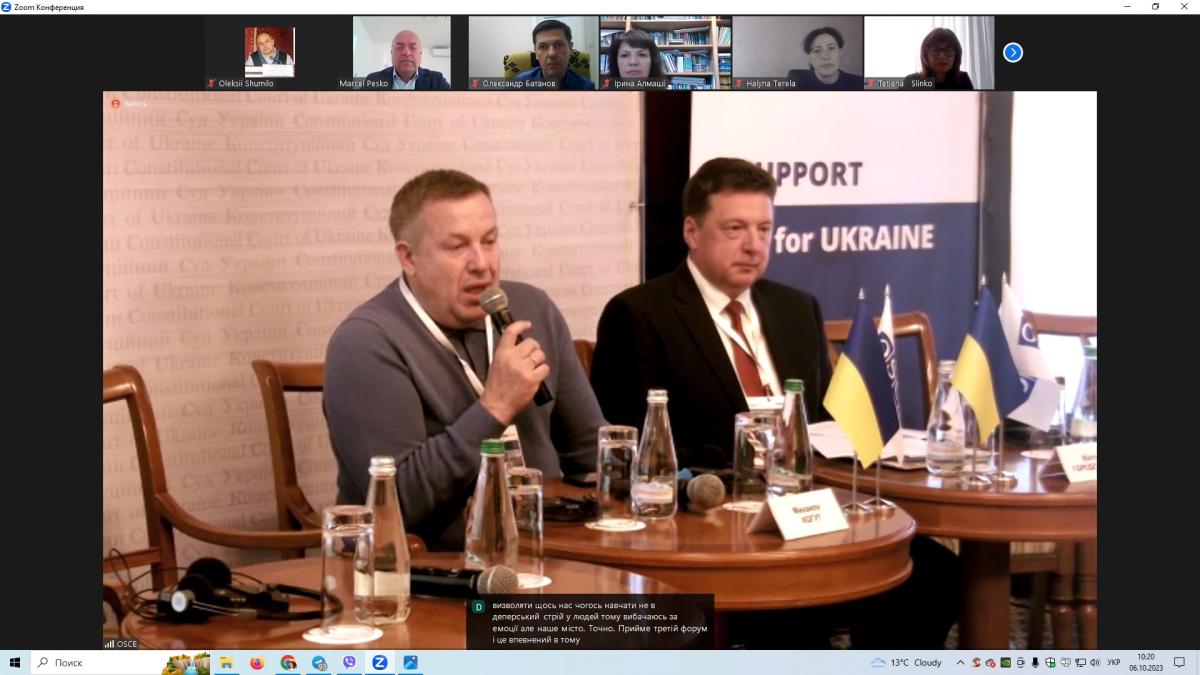Професор кафедри юридичних дисциплін Сумської філії ХНУВС Олексій Шуміло взяв участь у роботі ІІ Маріупольського конституційного форуму, що був організований Конституційним Судом України 06 жовтня 2023 року. Тема цьогорічного форуму «Візії майбутнього: конституційний вимір повоєнного відновлення України та європейської інтеграції».