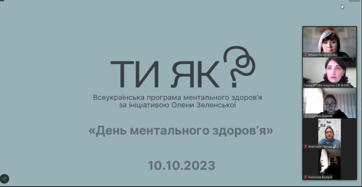 З нагоди Дня ментального здоров’я психологом відділення кадрового забезпечення Ганною Яровою була проведена низка просвітницьких заходів для здобувачів вищої освіти «Ментальне здоров’я: плекаємо стійкість».