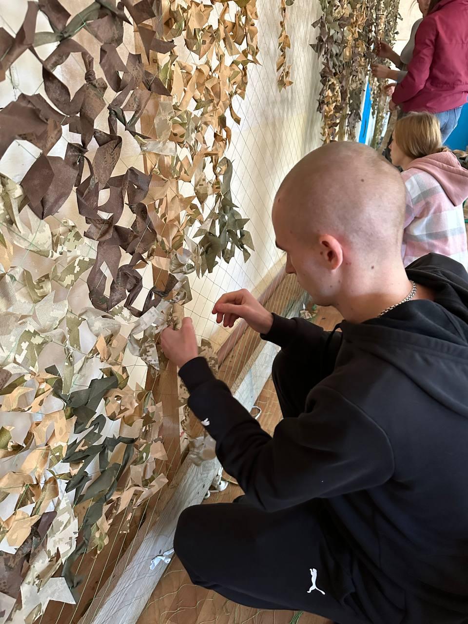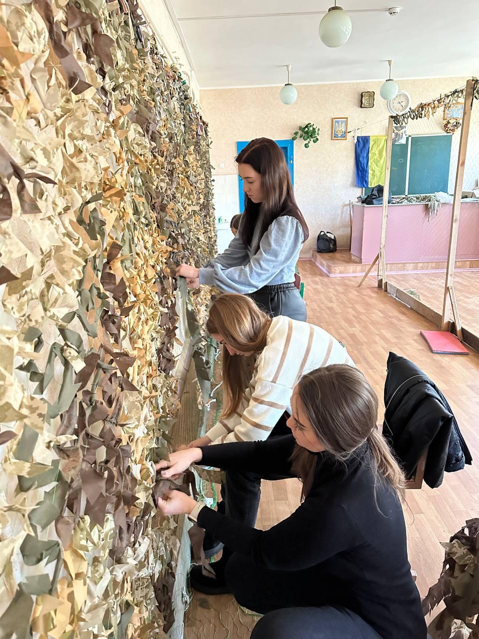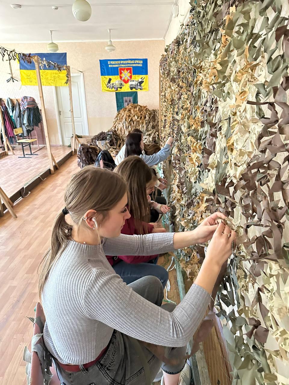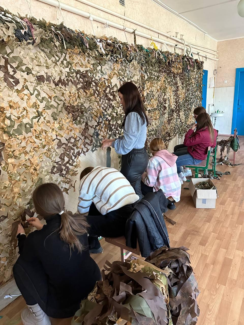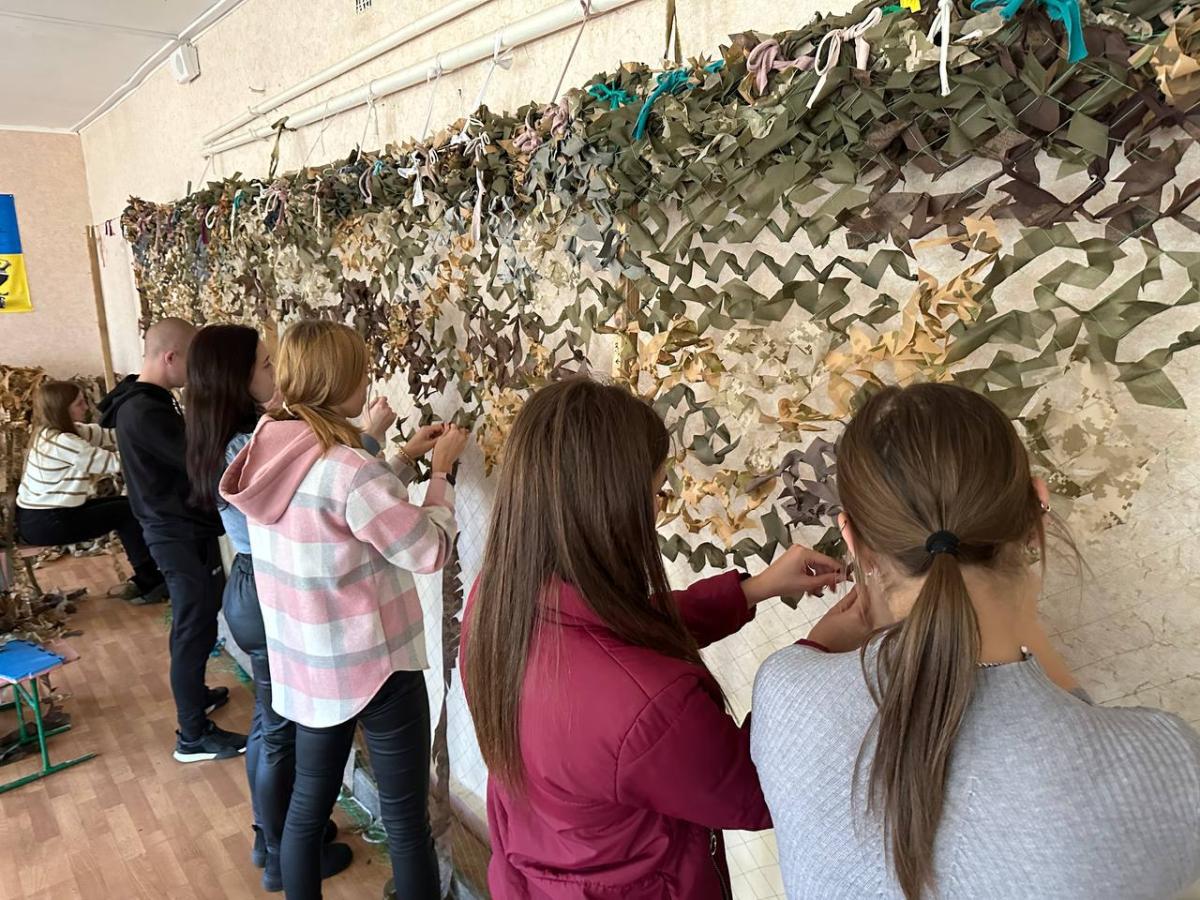Волонтери Сумської філії Харківського національного університету внутрішніх справ щотижня у позанавчальний час долучаються до плетіння маскувальних сіток для захисників нашої країни. Кожного разу наші хлопці та дівчата виготовляють одну сітку розміром 4 на 6 метрів.