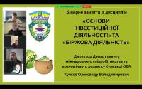 Доцентками кафедри соціально-економічних дисциплін Сумської філії Харківського національного університету внутрішніх справ Світланою Петровською та Людмилою Парфентій у межах вивчення дисциплін «Основи інвестиційної діяльності» для студентів 4 курсу та «Біржова діяльність» для студентів 2 курсу спеціальності 081 Право було організовано бінарне заняття за участю директора Департаменту міжнародного співробітництва та економічного розвитку Сумської обласної військової адміністрації Олександра Володимировича Кучкова у режимі відеоконференції на платформі для відеозустрічей Zoom.
