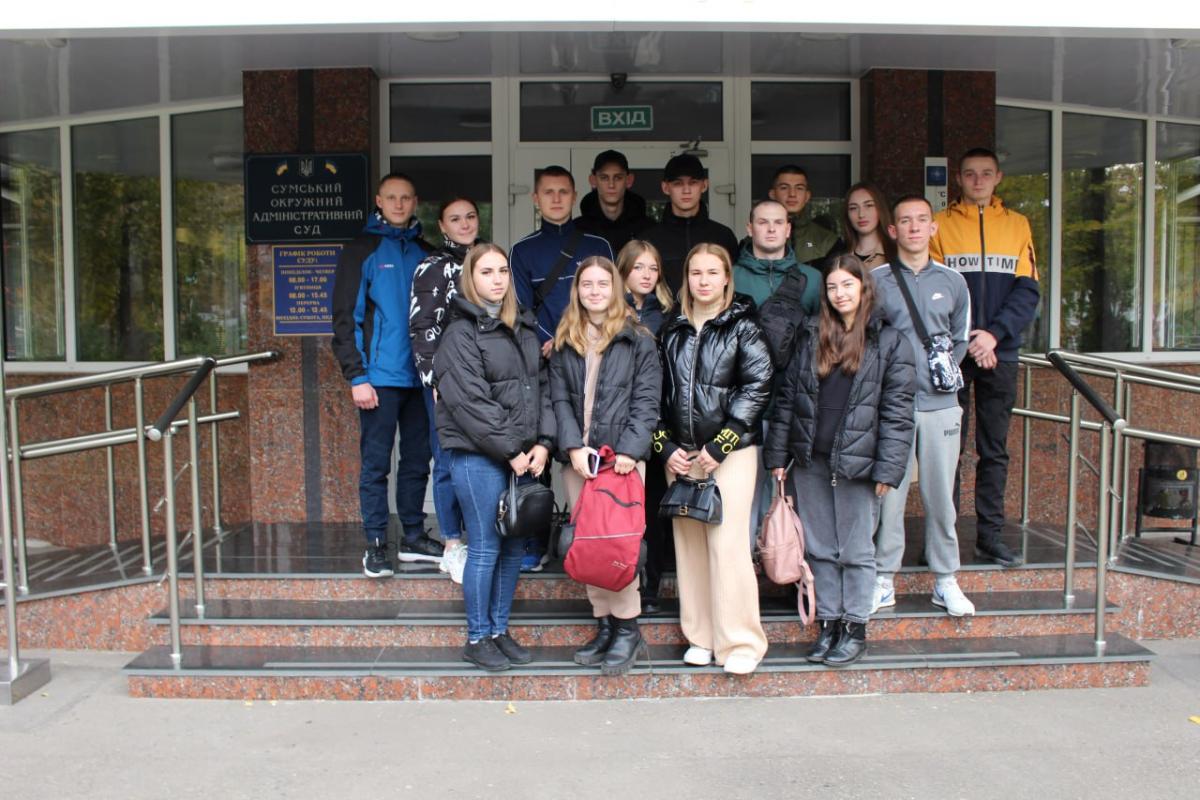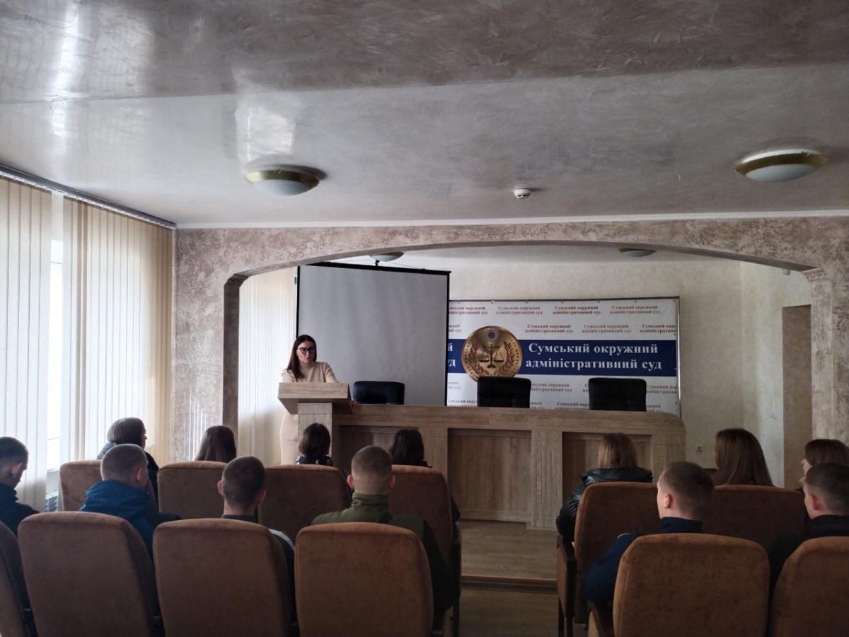 Курсанти групи СФ-201 разом зі старшим викладачем кафедри юридичних дисциплін Сумської філії ХНУВС Андрієм Сядристим завітали з ознайомчою екскурсією до Сумського окружного адміністративного суду.
