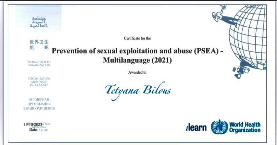 Після завершення навчання учасники отримали сертифікати тренінгу «PREVENTION OF SEXUAL EXPLOITATION AND ABUSE (PSEA) - MULTILANGUAGE (2021)».
