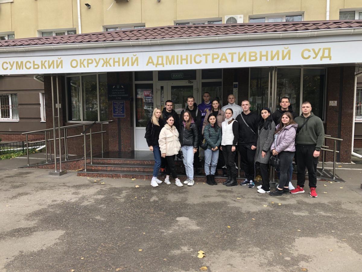 Курсанти групи СФ-203 разом зі професором кафедри юридичних дисциплін Сумської філії ХНУВС Олексієм Шуміло з метою закріплення теоретичних знань із навчальної дисципліни «Судові та правоохоронні органи України» завітали до Сумського окружного адміністративного суду.