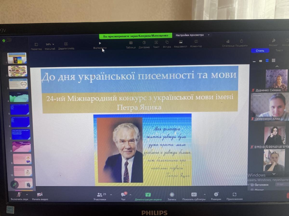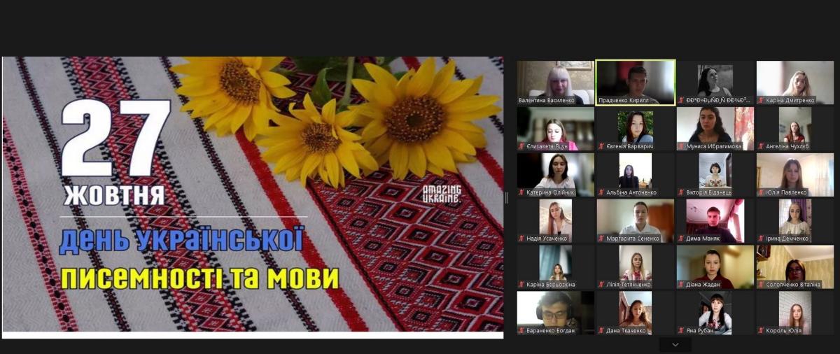 Завідувачкою кафедри гуманітарних дисциплін Валентиною ВАСИЛЕНКО цьогоріч протягом кількох днів проводився цикл заходів серед здобувачів вищої освіти, присвячених державному святу, яке відповідно до нового календаря тепер відзначається в Україні 27 жовтня. Тож майбутні правознавці розвивали в цей день українську мову за допомогою такої активності, як інтелект-квест, мовний квіз, лінгвовікторина, круглий стіл «Українська – мова Перемоги». А конкурсанти виконували поетапно завдання І туру Конкурсів, за результатами якого буде визначено переможців для подальшої боротьби в наступних турах.