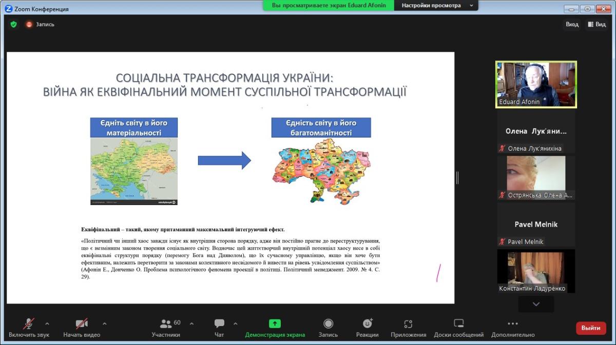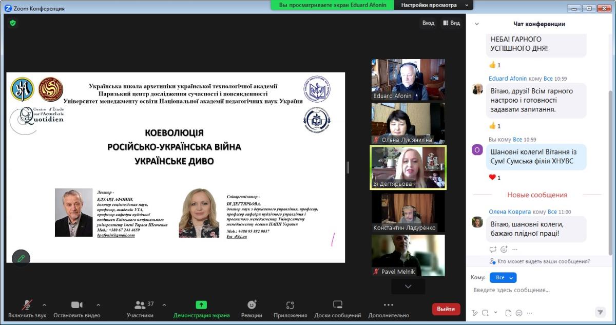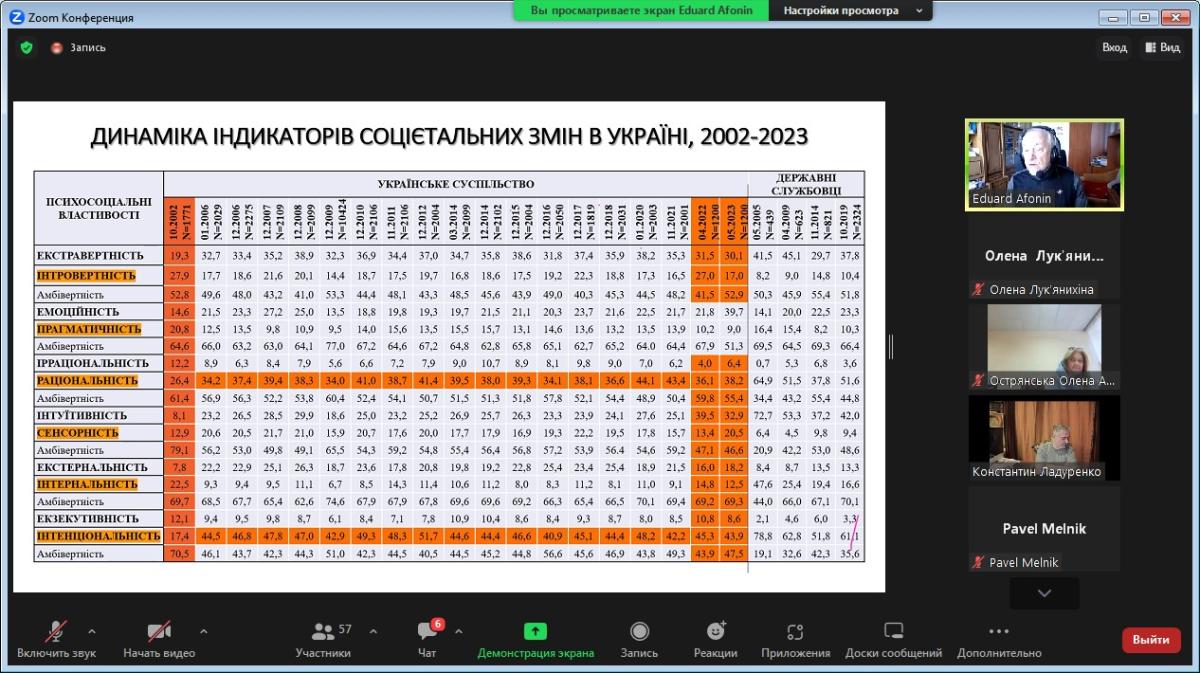 Завідувач кафедри соціально-економічних дисциплін Олена ЛУК’ЯНИХІНА відвідала відкриту гостьову лекцію Едуарда АФОНІНА, доктора соціологічних наук, професора. академіка української технологічної академії, професора кафедри публічної політики Київського національного університету імені Тараса Шевченка і пройшла підвищення кваліфікації на тему «Суспільна трансформація, російсько-українська війна і українське диво: за матеріалами моніторингу української школи архетипіки (1992-2023)»